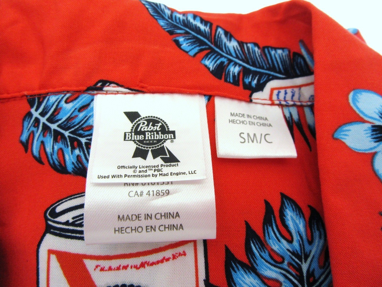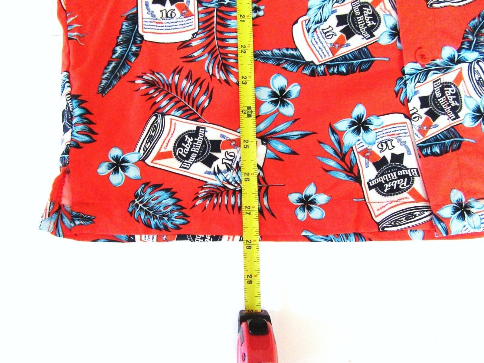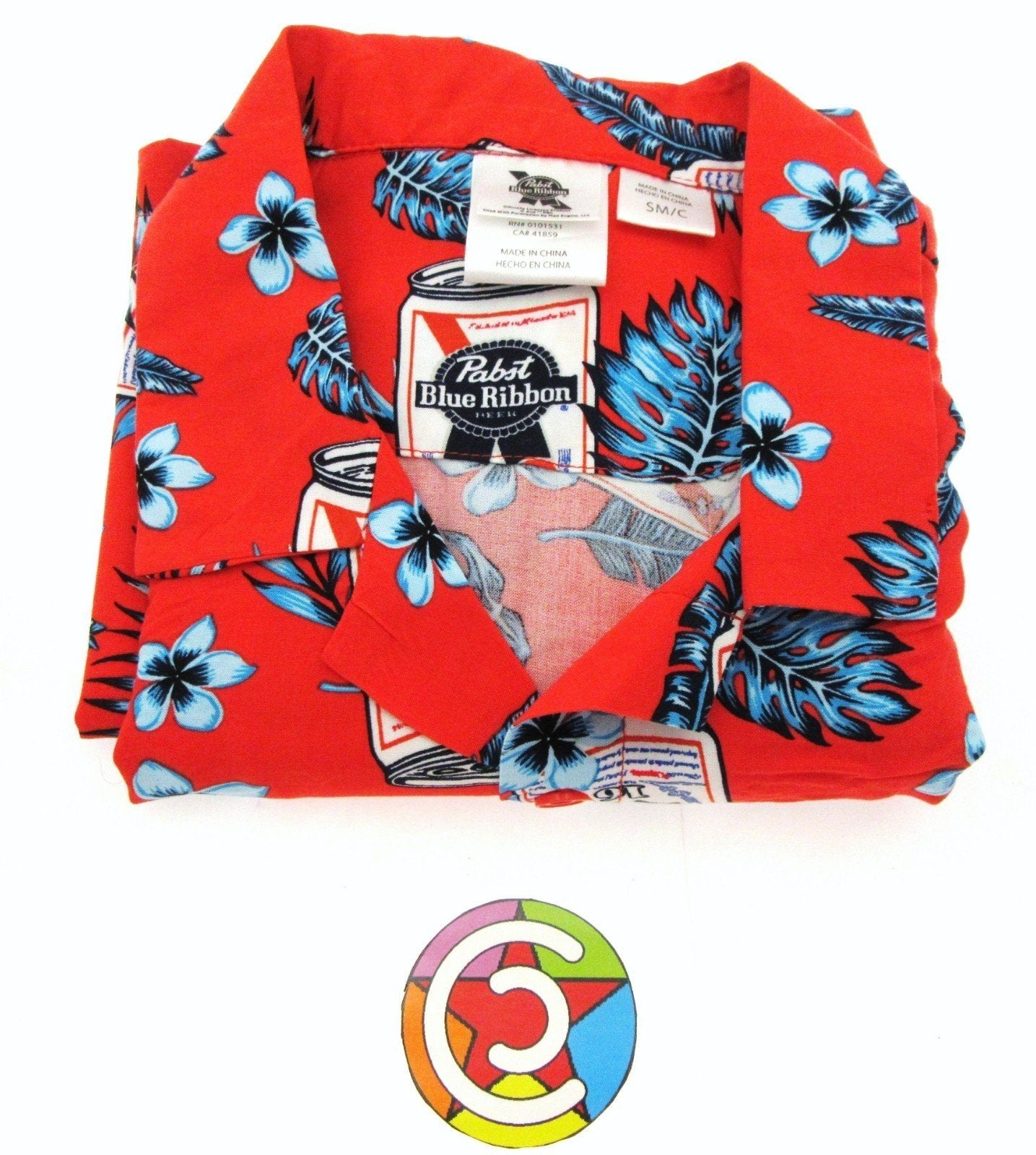 ~ Pabst Blue Ribbon ~Button Up Shirt Small 34 / 36 ~ Red The Pabst Blue Ribbon Button-up Shirt is a stylish and comfortable choice for any man, featuring a unique floral pattern with beer cans design. Made from 100% Rayon material, this lightweight shirt is quick to dry and easy to care for with its machine washable fabric. The red color, collared neckline, and short sleeves give it a classic look, perfect for any occasion. With the iconic Pabst Blue Ribbon branding and a regular fit, this shirt is a must-have for any beer enthusiast or holiday lover. Click here to see more Clothing!