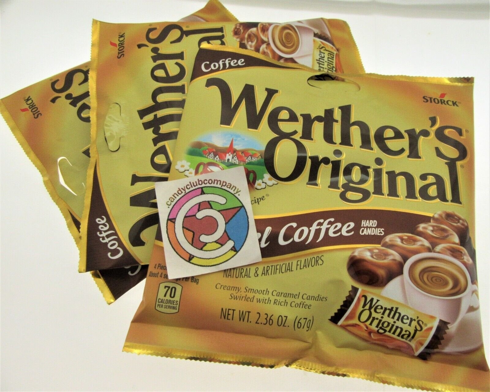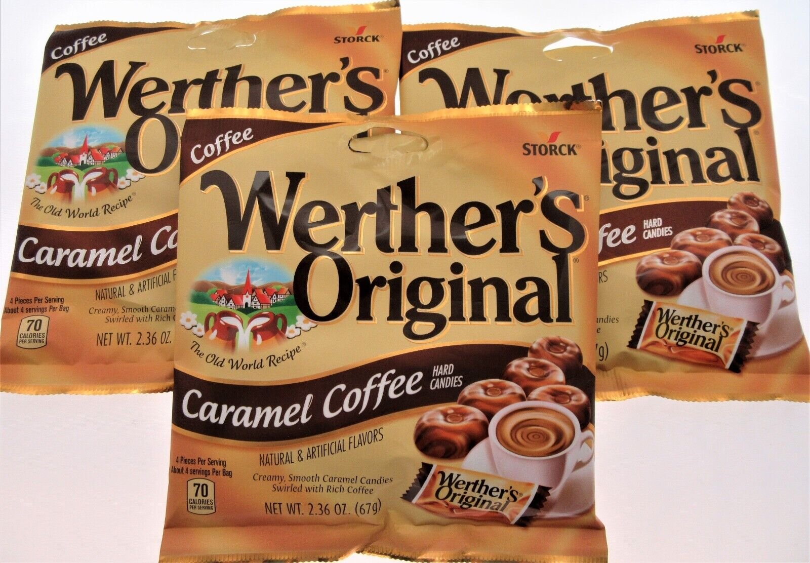 Werther's Original Caramel Coffee 2.36oz Bags Brown Werthers Candies Lot of 3