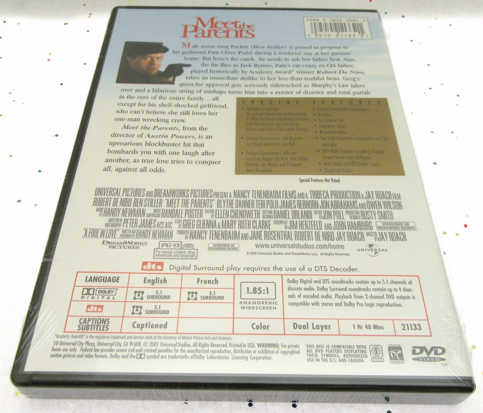 Get ready to laugh with this movie lot featuring Ben Stiller's "Meet the Parents" and "Meet the Fockers". This DVD set includes both movies in a tall/DVD case and is rated PG-13. Directed by Jay Roach, the movies are a comedy video genre with a run time of 108 minutes. The DVD is in the format of region code DVD: 1 (US, Canada...) and was released in the year 2000 by Universal Studios. The movies feature Ben Stiller as the leading role and are a must-have for any fan of the actor or comedy movies. Add this movie lot to your collection today!