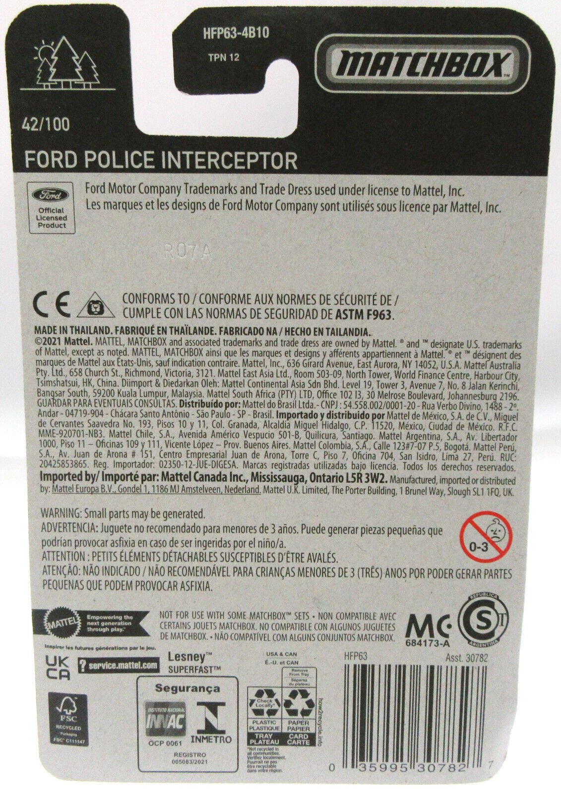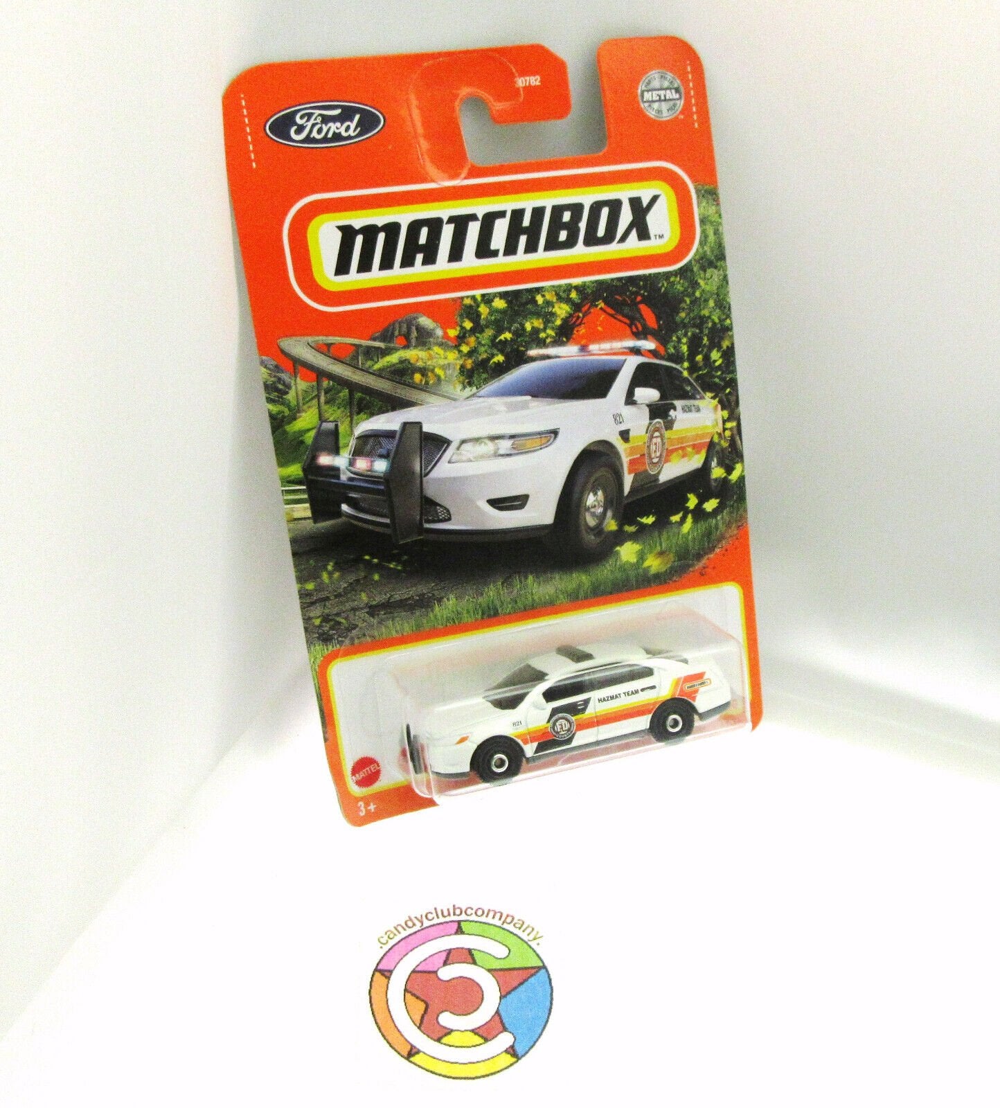 Introducing the Ford Police Intercepter Hazmat Team diecast car in white and orange, made by Matchbox at a 1:64 scale. This special edition car is a limited edition advertising specimen that comes in an unopened box and is recommended for children aged 3 and above. The car features a white color, with a service theme, and is perfect for boys and girls who love cars. This  Matchbox car is made of high-quality materials and is a must-have for collectors and toy enthusiasts alike. The car is part of the Ford Police Intercepter Hazmat Team series and is an excellent addition to any collection. Get yours today and experience the thrill of owning a Matchbox car!