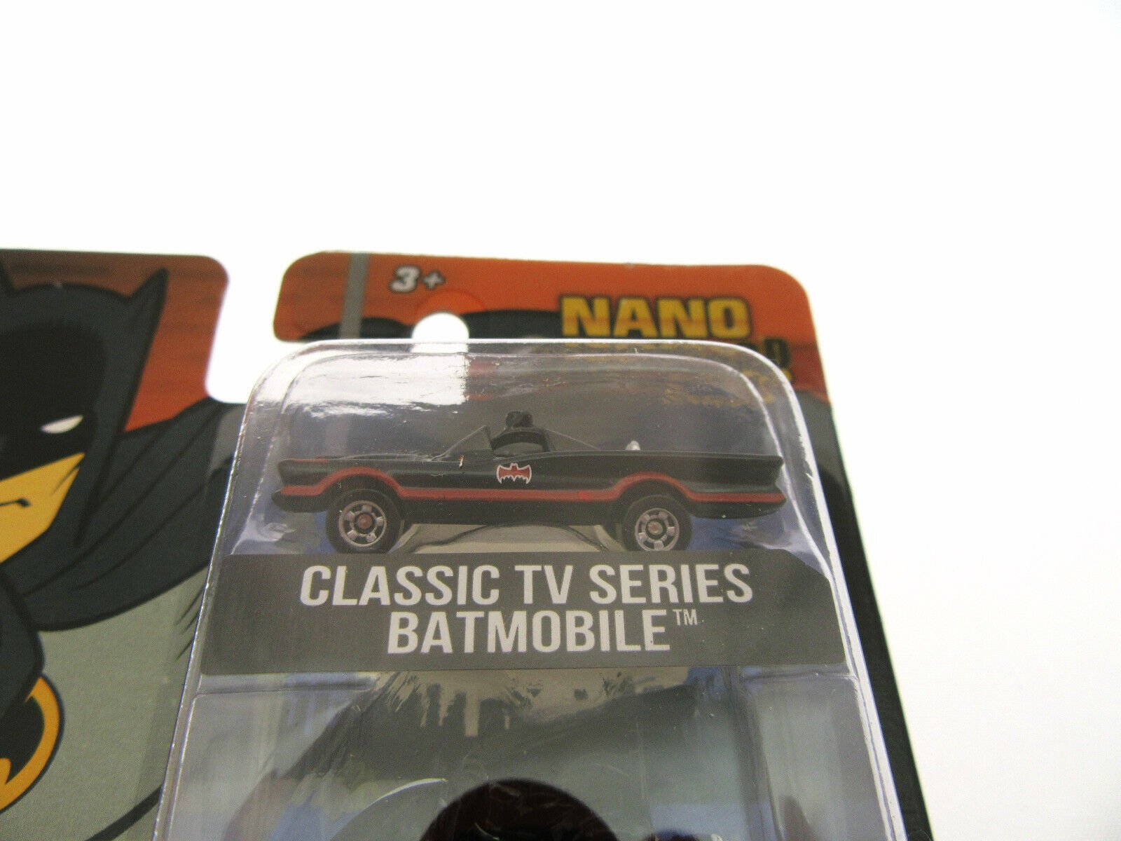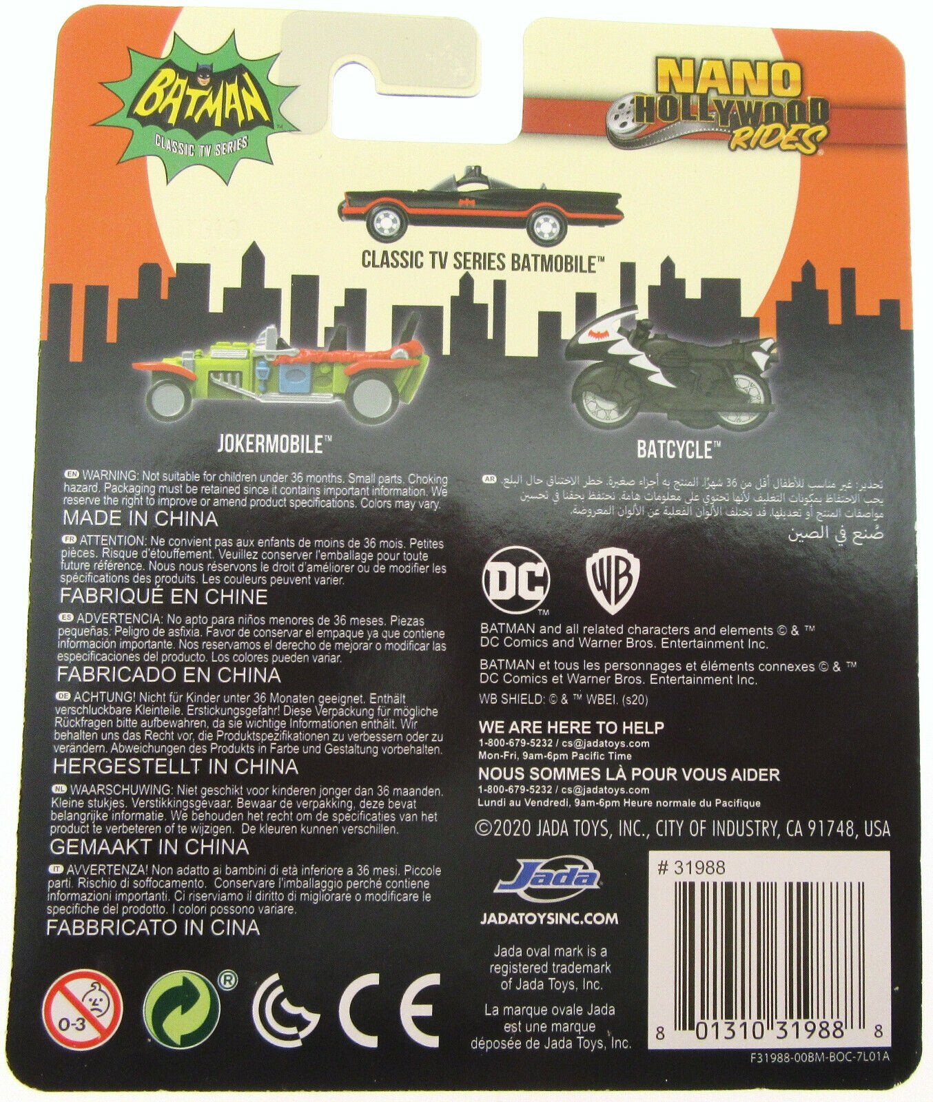 Get ready for an adventure with the BATMAN Nano Hollywood Rides Die Cast set. This set includes the iconic Batmobile, Batcycle, and Jokermobile, all in 1:87 scale. The black die cast metal material adds to the durability and authenticity of the toys. The unopened box is perfect for collectors and kids alike, and the recommended age range of 3+ ensures that it's safe for young children to play with. The multi-model set is part of the Batman classic TV series, and the features include a Penguin Duck, Penguin Ride, and Batmobile. This is a must-have for any Batman fan or collector.