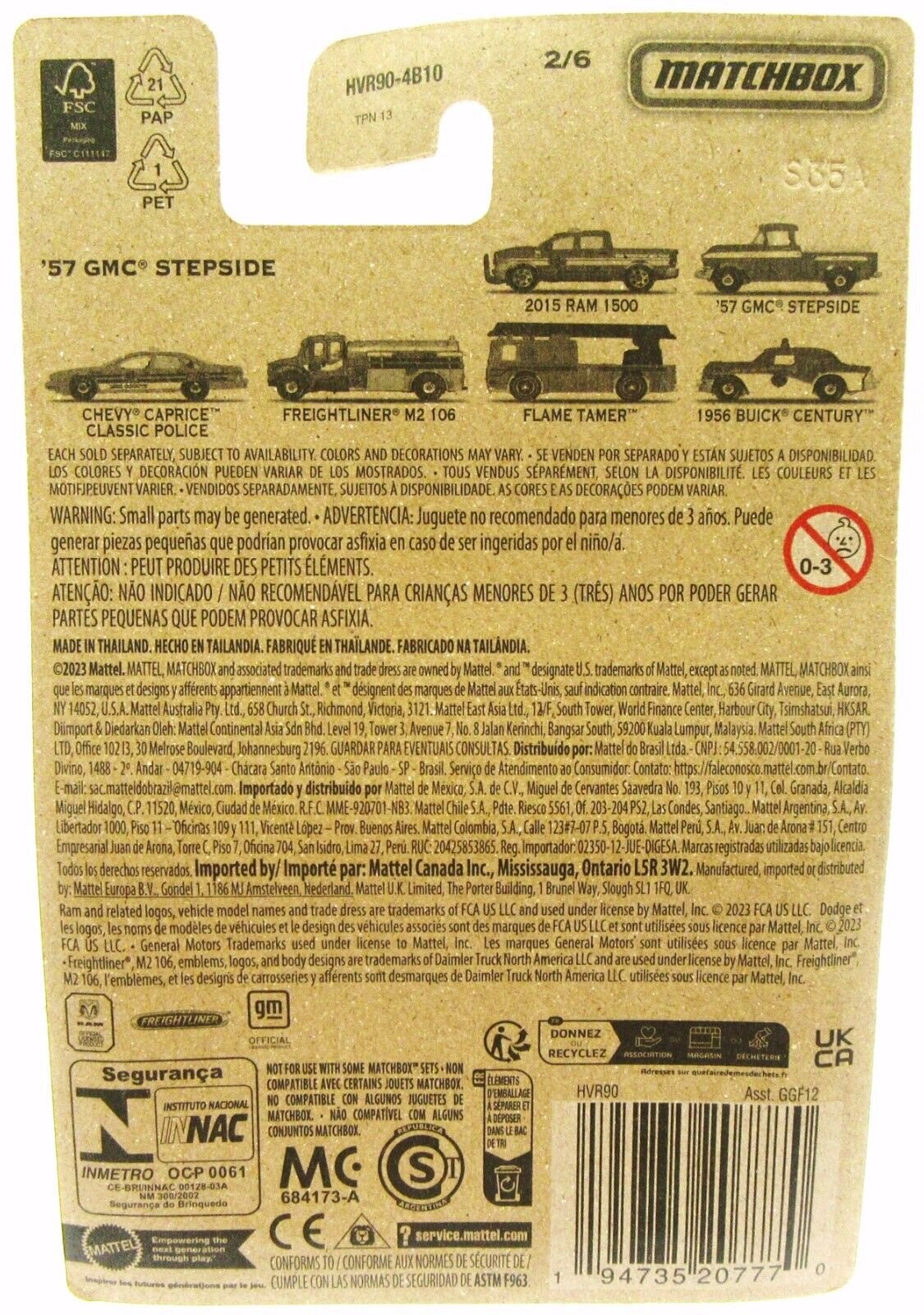 This 1957 GMC Stepside in red is a must-have for any young boy or girl who loves cars and trucks. Made of high-quality diecast material and built to a 1:64 scale, this Matchbox County Rescue vehicle is perfect for playtime or as a collectible item. The vehicle make is GMC, and the model is a pick-up with a stepside design. The color is a vibrant red that is sure to catch the eye of anyone who sees it. The toy is recommended for children aged 3 and above, and it is part of the 1:64 Series character family. This vehicle is perfect for anyone who loves cars and wants to add a unique item to their collection.