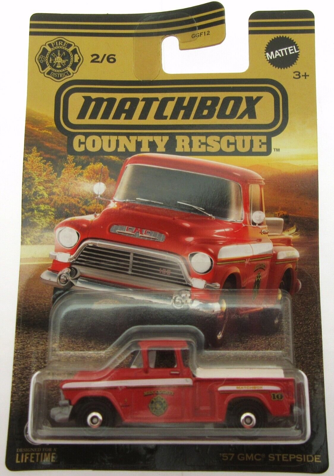 1957 GMC Stepside~ Red ~ 1:64 Scale ~ Matchbox County Rescue
