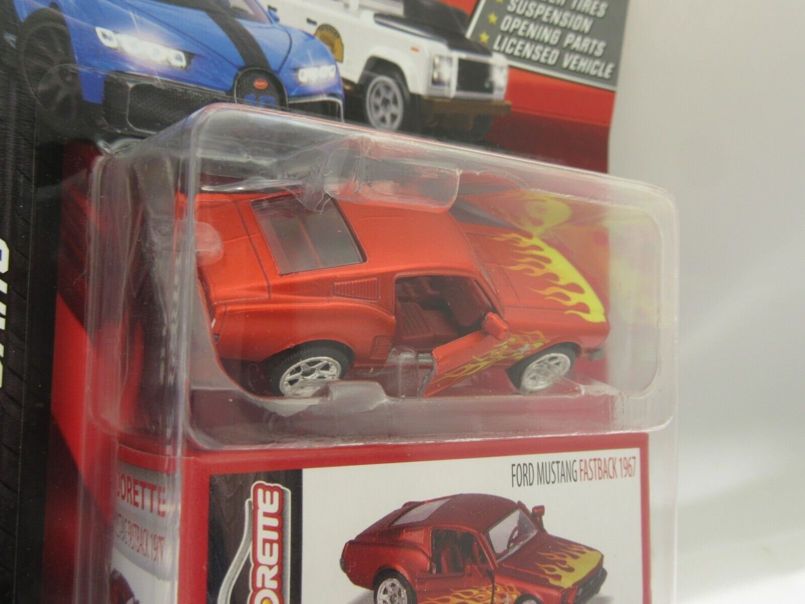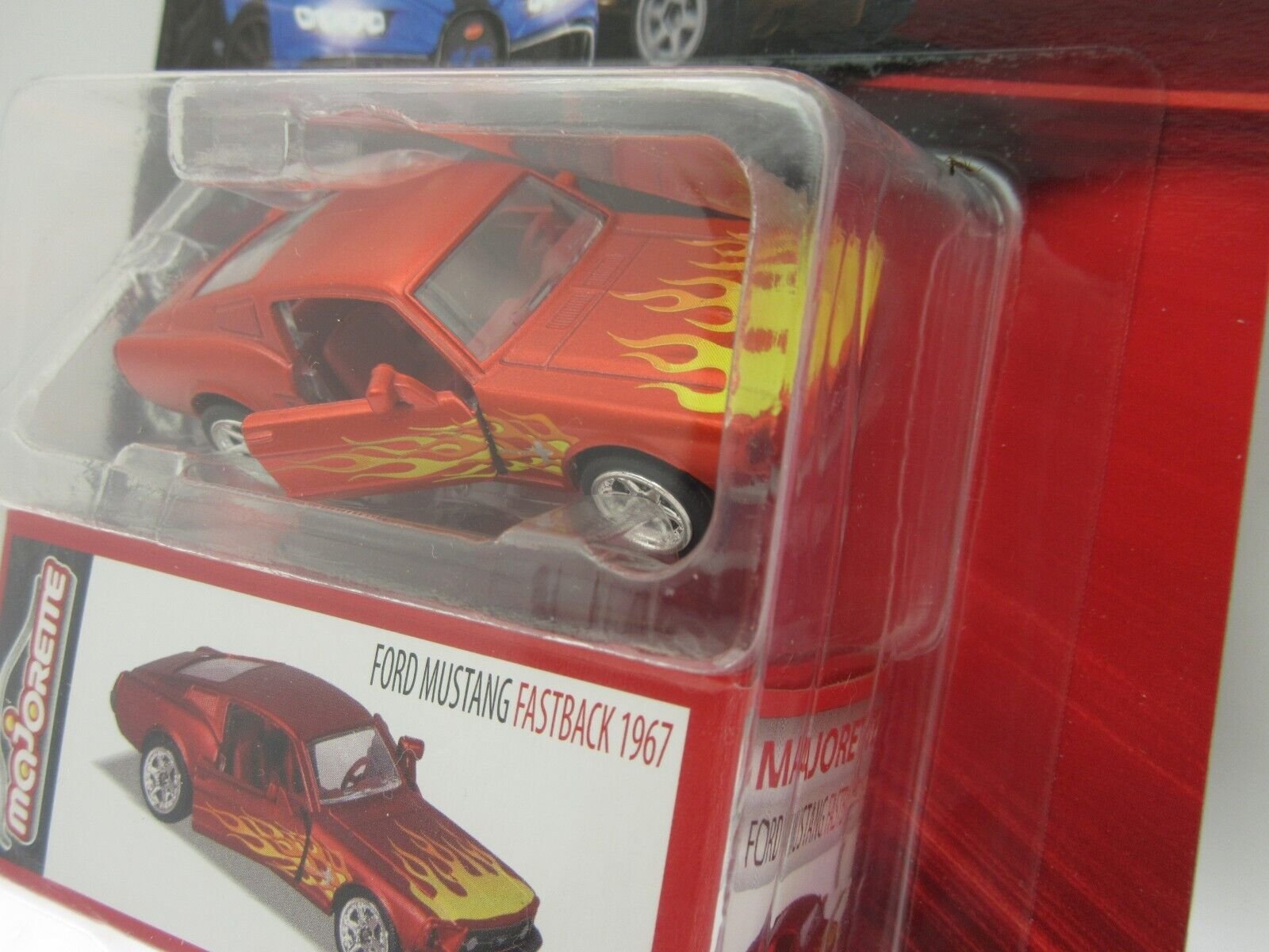 This 1967 Ford Mustang Fastback die-cast car from Majorette's Deluxe Cars series is a must-have for any car collector or fan of toy cars. The vibrant red and yellow color scheme, along with the intricate detailing, makes this model a standout addition to any collection. At 1:64 scale, this Ford Mustang Fastback is the perfect size for display or play. The die-cast material ensures durability and authenticity, while the custom bundle allows for a unique and personalized touch. This car is suitable for ages 3 and up, and is sure to be a hit with both boys and girls.