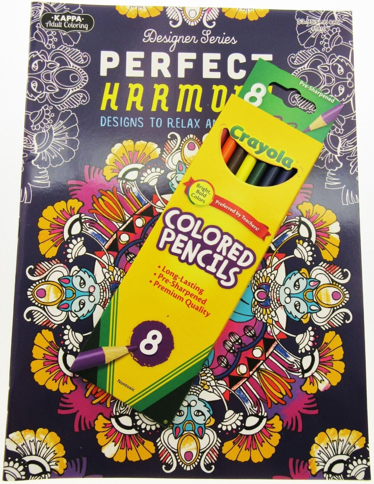 32 page Adult Coloring Book - Perfect Harmony w/8 colored pencils