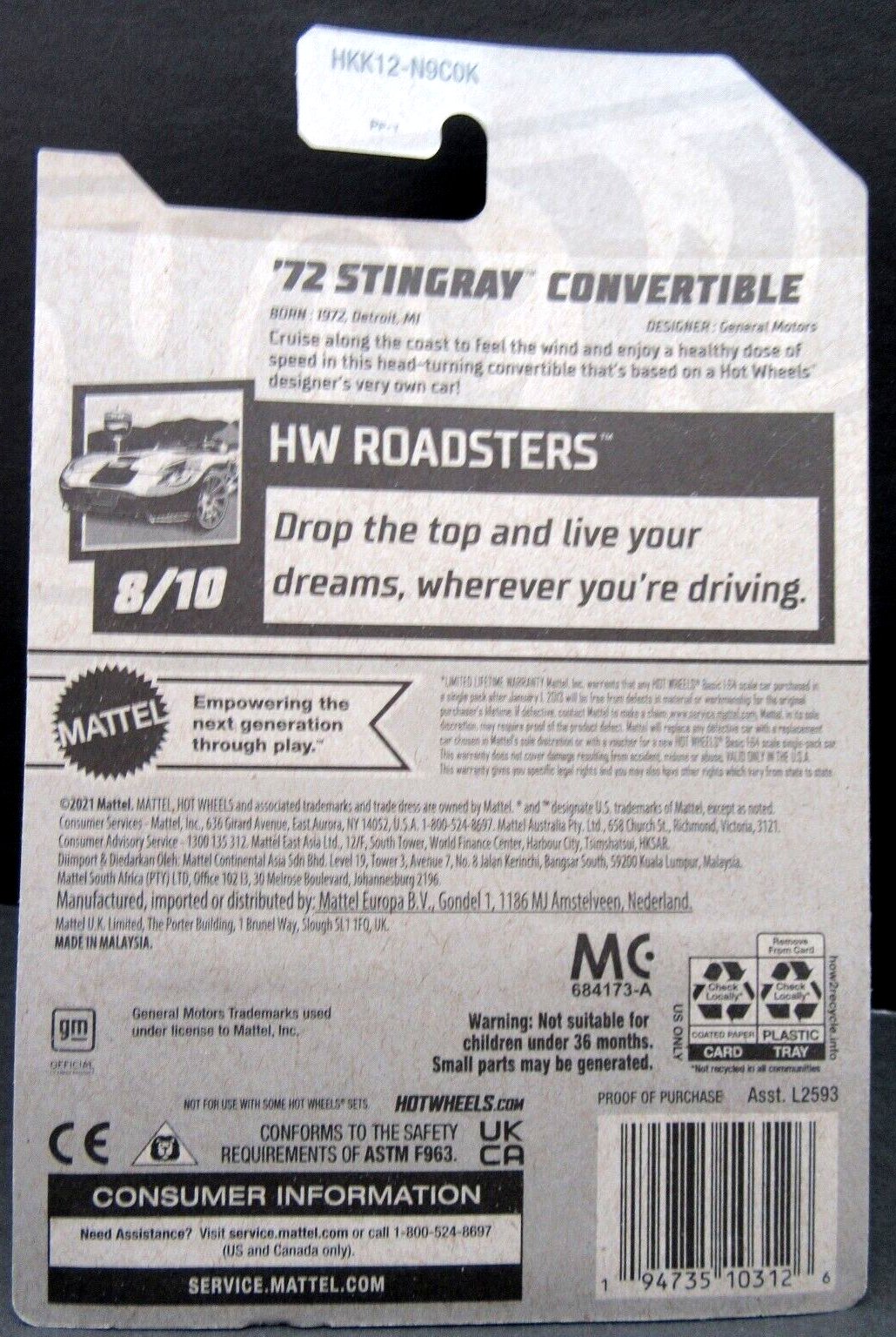 72 Corvette Stingray Convertible HW Roadster Hot Wheels ~ Die Cast