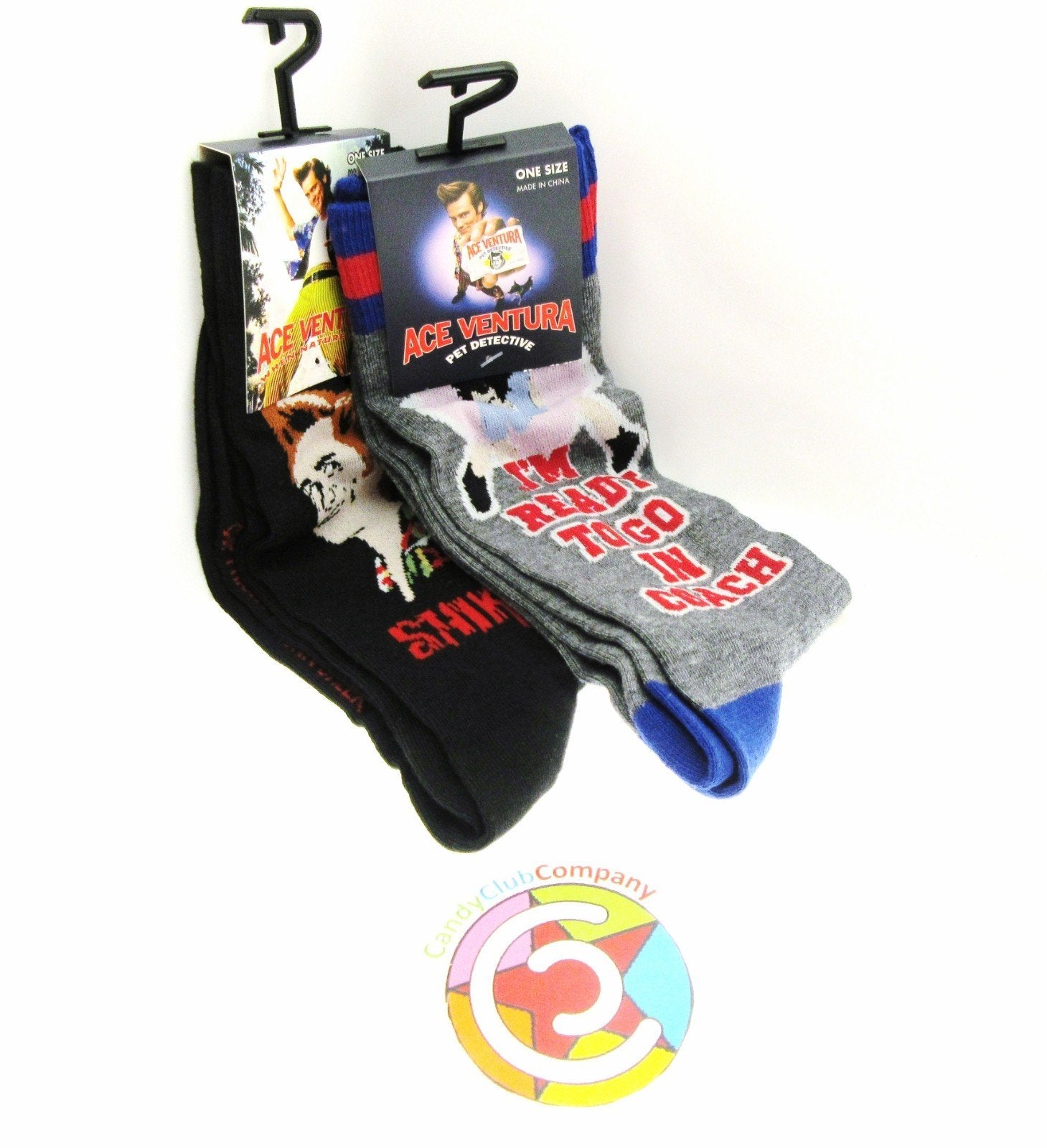 ~ Ace Ventura Socks ~ Fits Shoe Sizes 7-12 menOne pair of "I'M READY TO GO IN COACH" One pair of "SHIKAKAH"