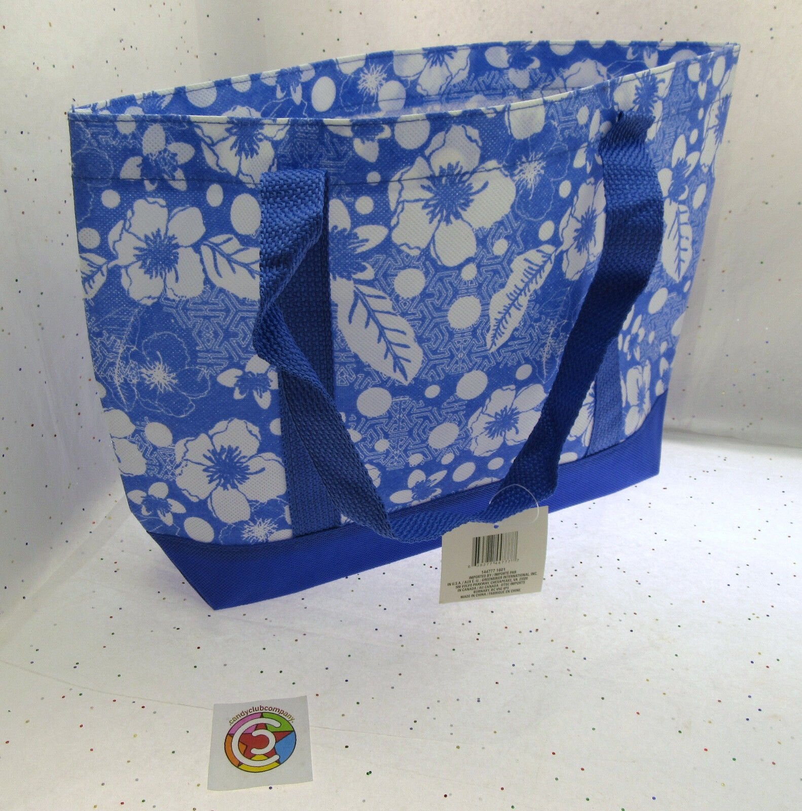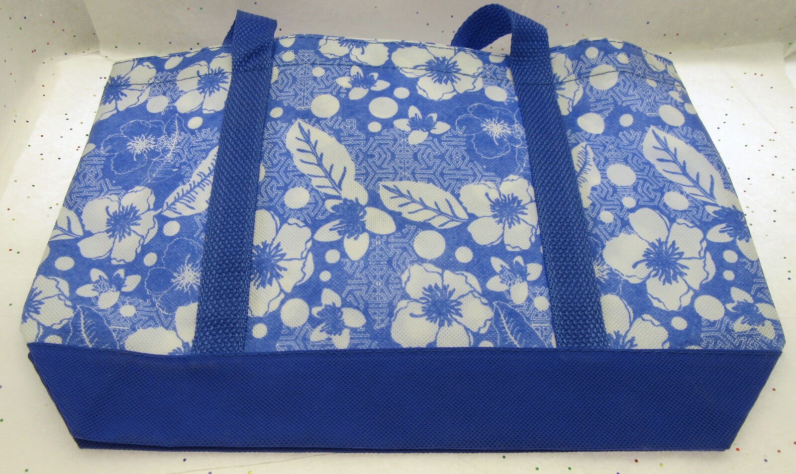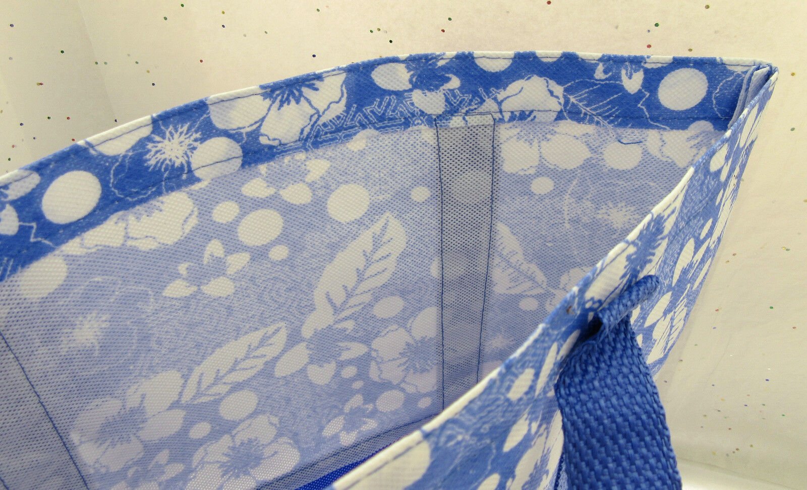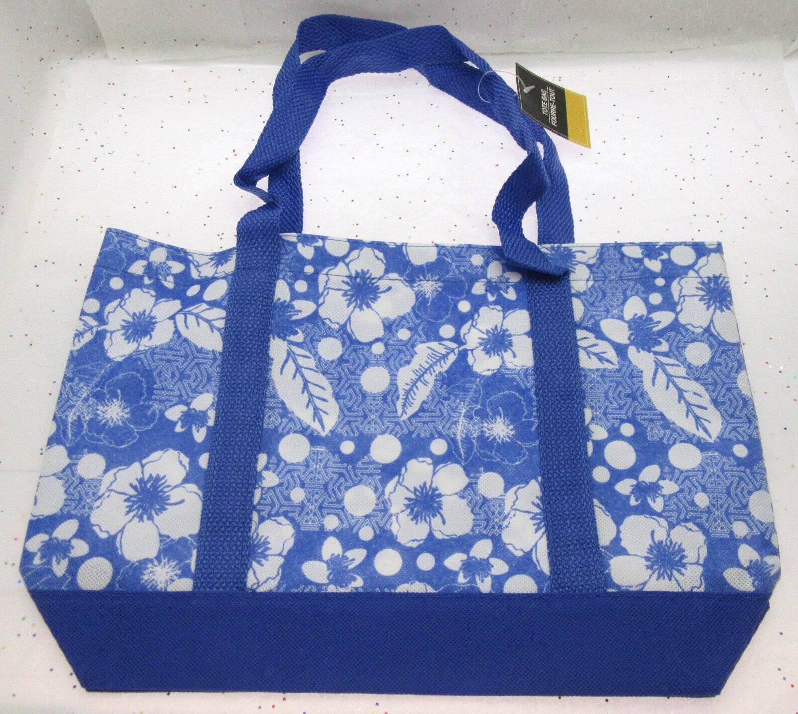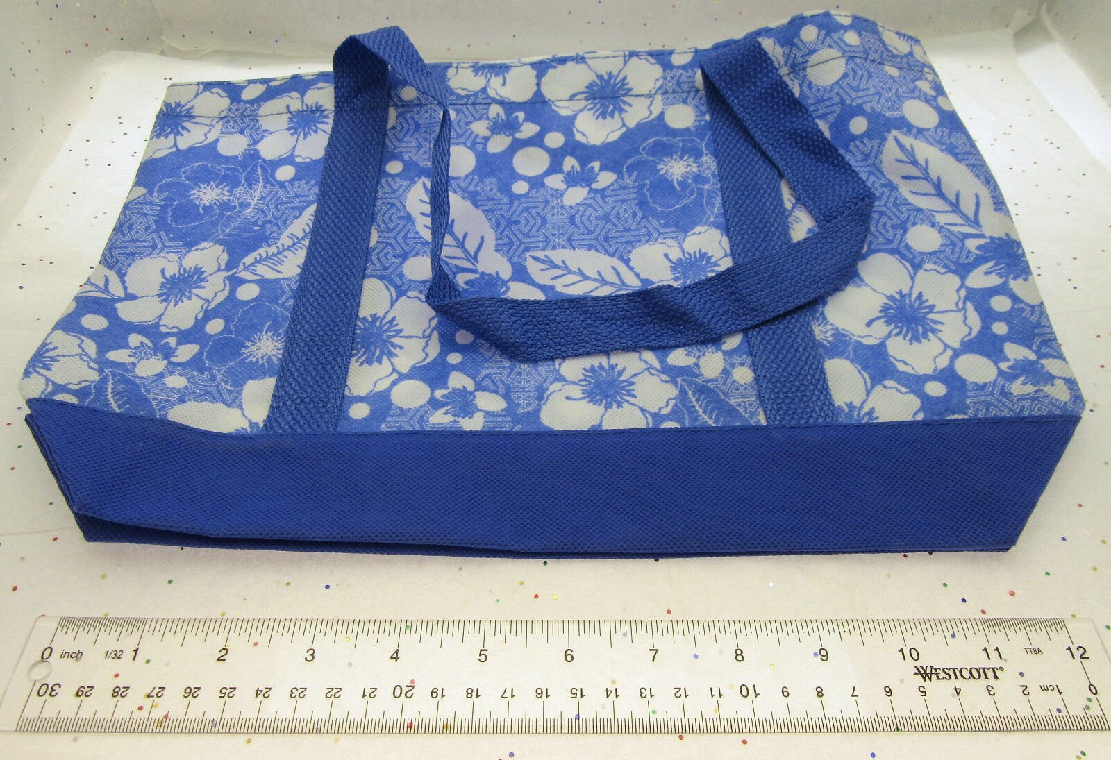 Floral Tote Bag ~ Reusable Eco Bags Grocery Beach ~ Blue