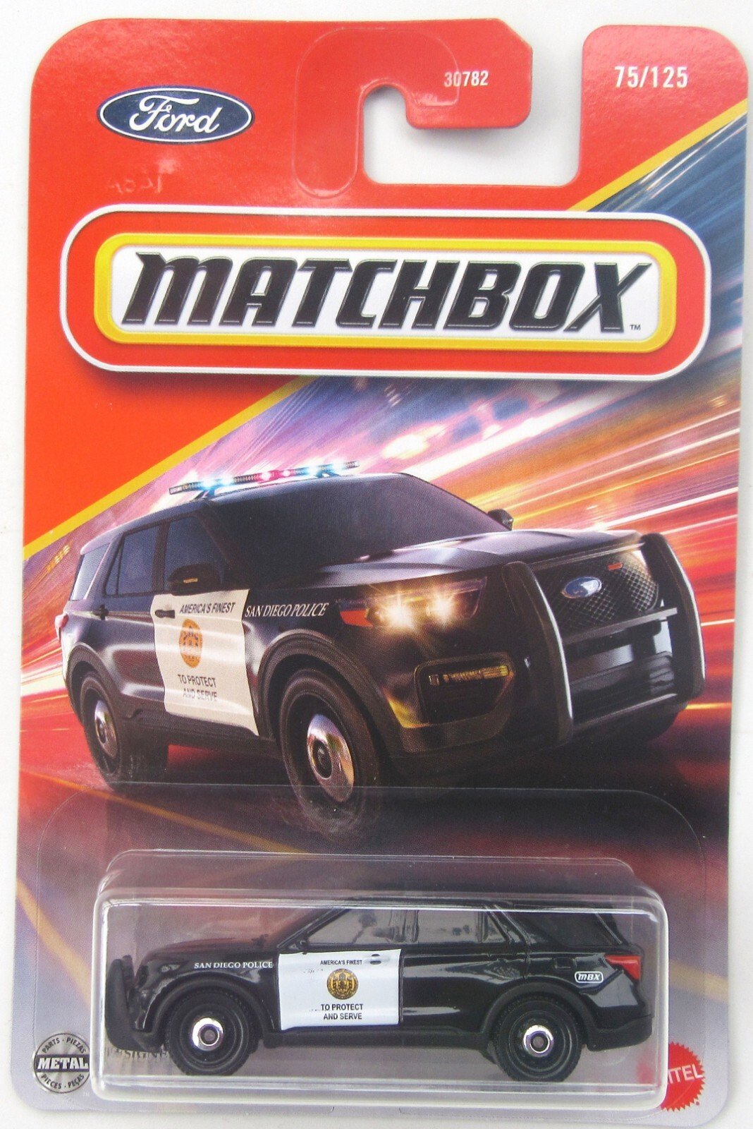 This 1:64 scale diecast model of a Ford Police Interceptor, designed to resemble a San Diego police car, is a special edition Matchbox product. The black & white color and law enforcement theme make it a great addition to any collection, while the unopened box and advertising specimen features make it a unique find for collectors and enthusiasts alike. Recommended for ages 3 and up, this toy vehicle is perfect for boys and girls who love cars and the police force. The Matchbox brand is known for its attention to detail and this model is no exception, with features like a chase design and limited edition status. Whether you're a fan of cars or law enforcement vehicles, this toy is sure to impress.