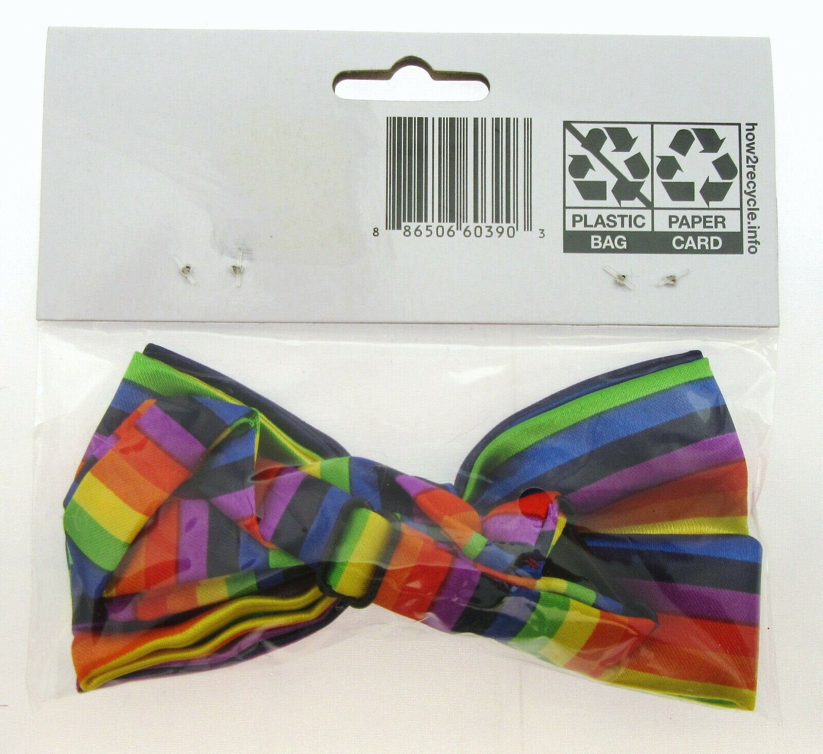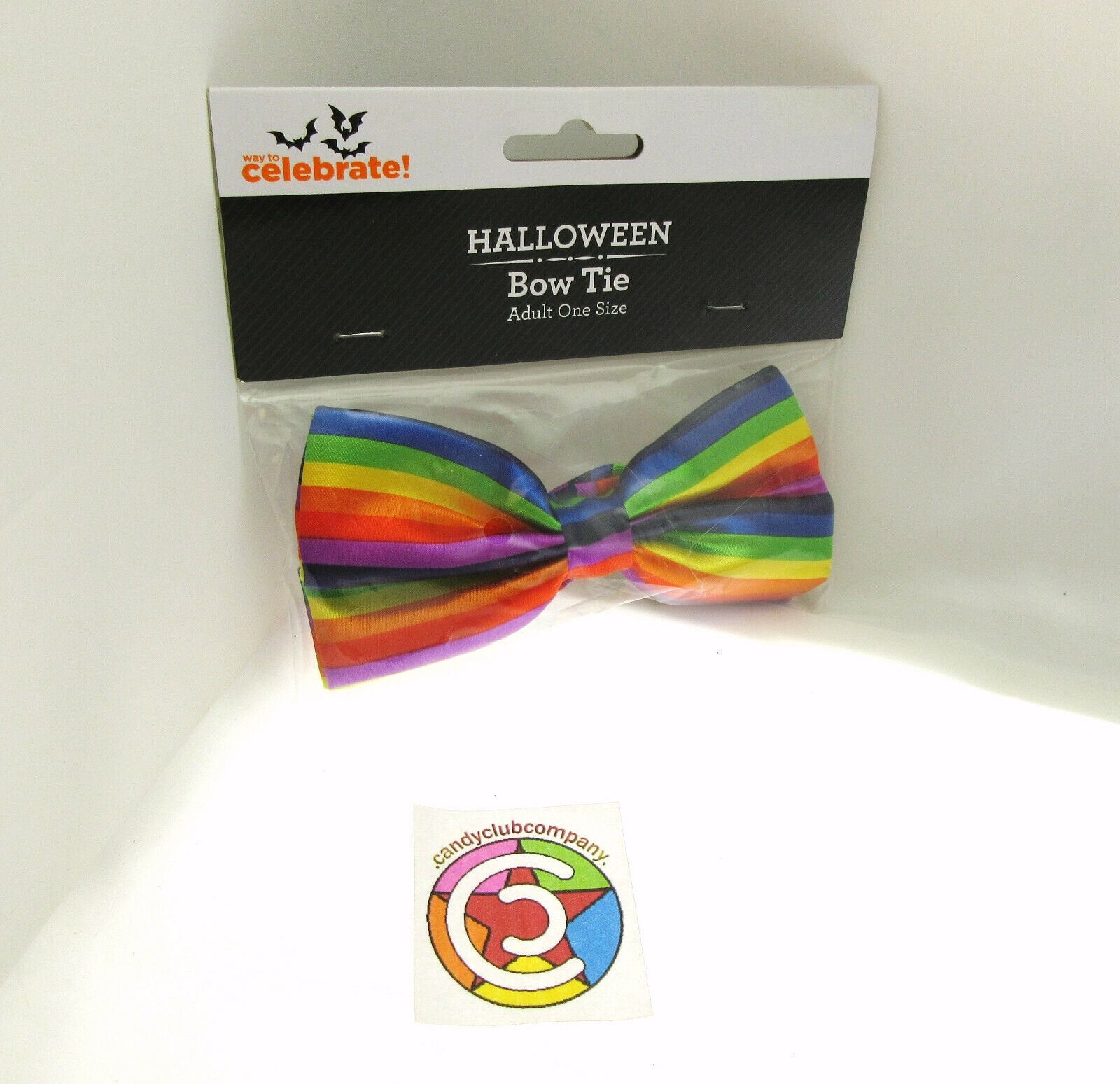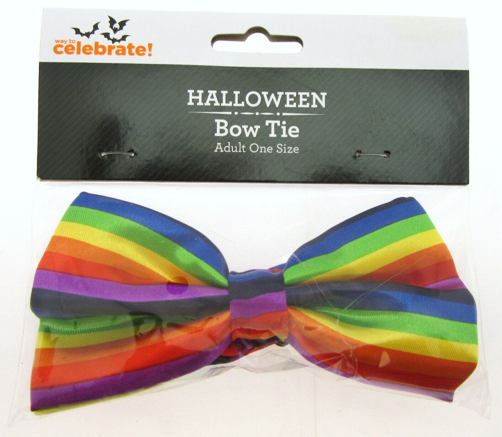 Add a festive touch to your Halloween or play outfit with this colorful bow tie. Perfect for any unisex celebrator, this one-size-fits-all accessory is sure to make a statement. The rainbow-like hues of the bow tie are perfect for Halloween or any playful occasion. Whether you're dressing up for wings, tails, ears, or nose, this bow tie is a great addition to your outfit. Get ready to celebrate in style with this Halloween Bow Tie!
