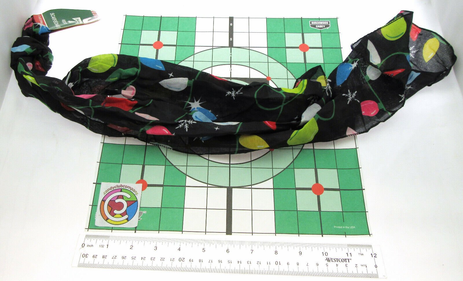 ~ Colorful Bulbs on Black ~  Holiday Scarf !Christmas BulbsHappy Holidays!  Important Information:• Candy that is pictured