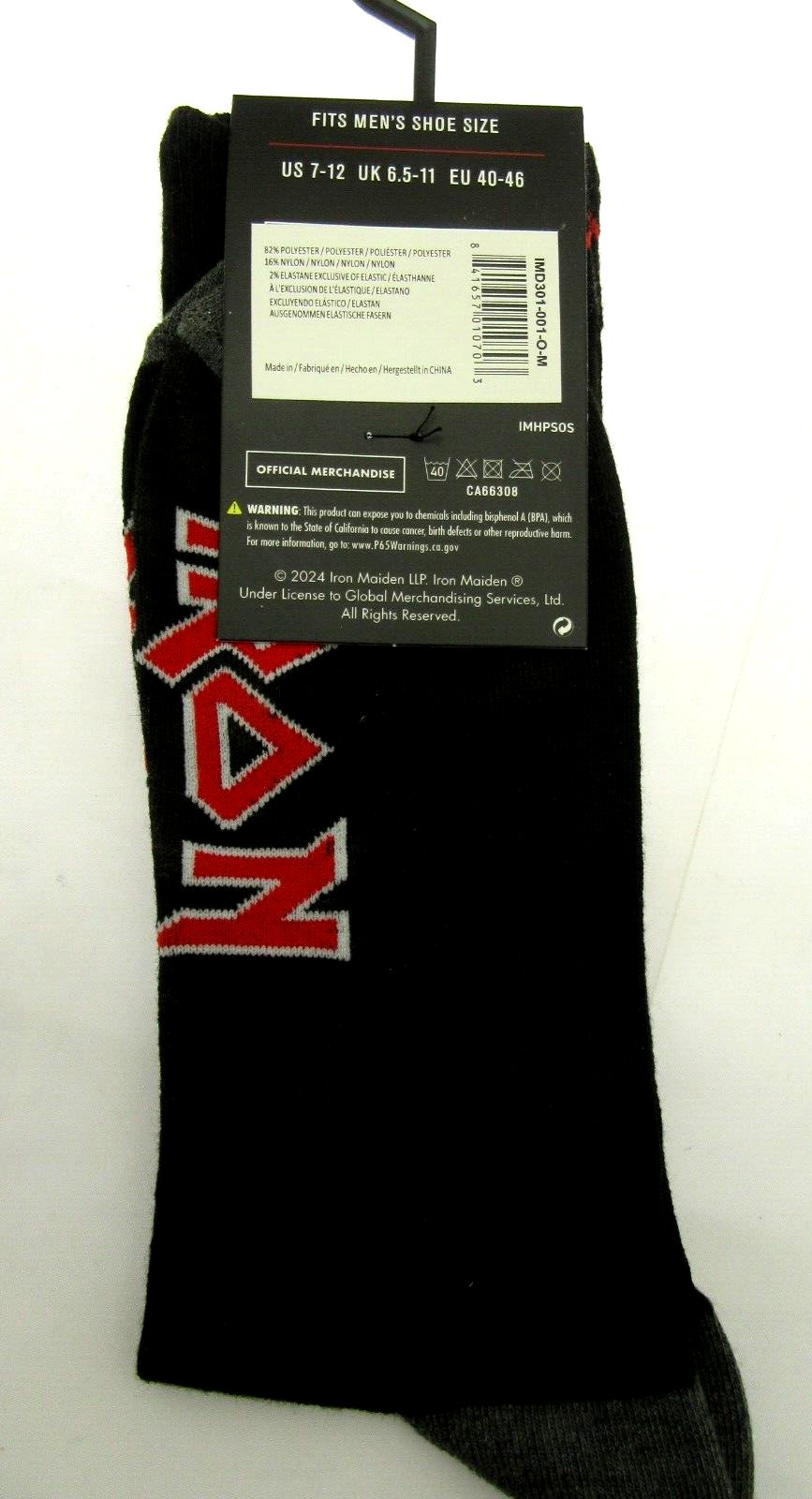 Iron Maiden Crew Socks ~ Eddie the Head ~ Men Sizes 7 - 12 ~ One Pair