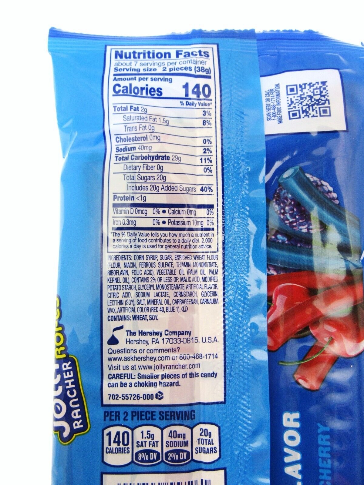Indulge in the sweet and fruity taste of Jolly Rancher's Ropes, a classic American soft candy favorite. The green apple, cherry, watermelon, and blue raspberry flavors will surely satisfy your sweet tooth cravings. This product is made with soy and wheat allergens, so please take note of your allergies before indulging. The packaging is in a convenient bag format, making it a great addition to your pantry. Enjoy the creamy and chewy texture of Jolly Rancher's Ropes, perfect for any occasion.