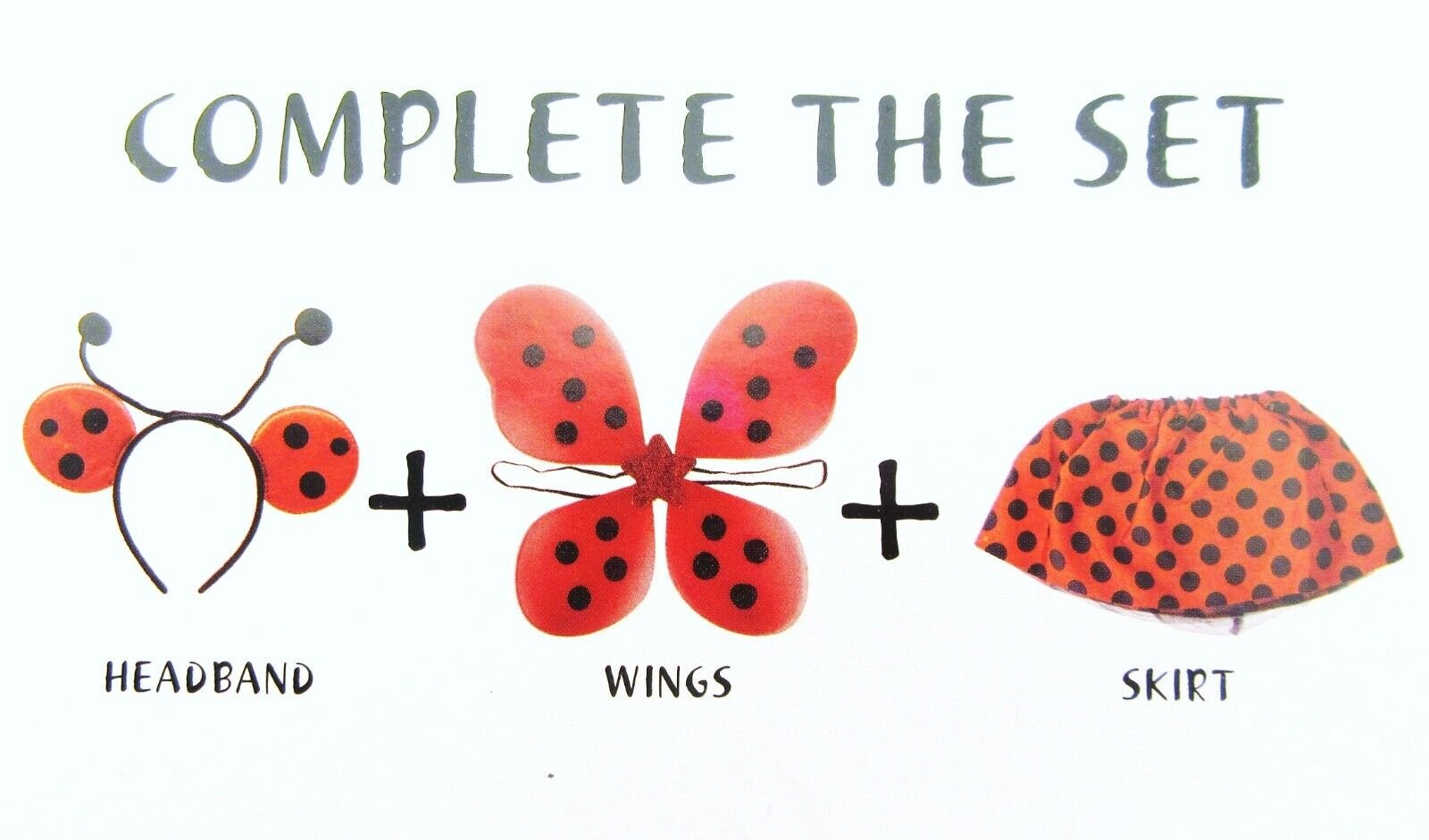 Lady Bug ~ Headband, Wings & Skirt ~ Dress Up Costume ~ Halloween or Play