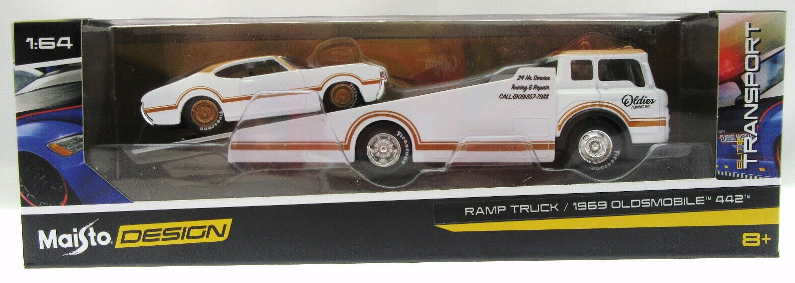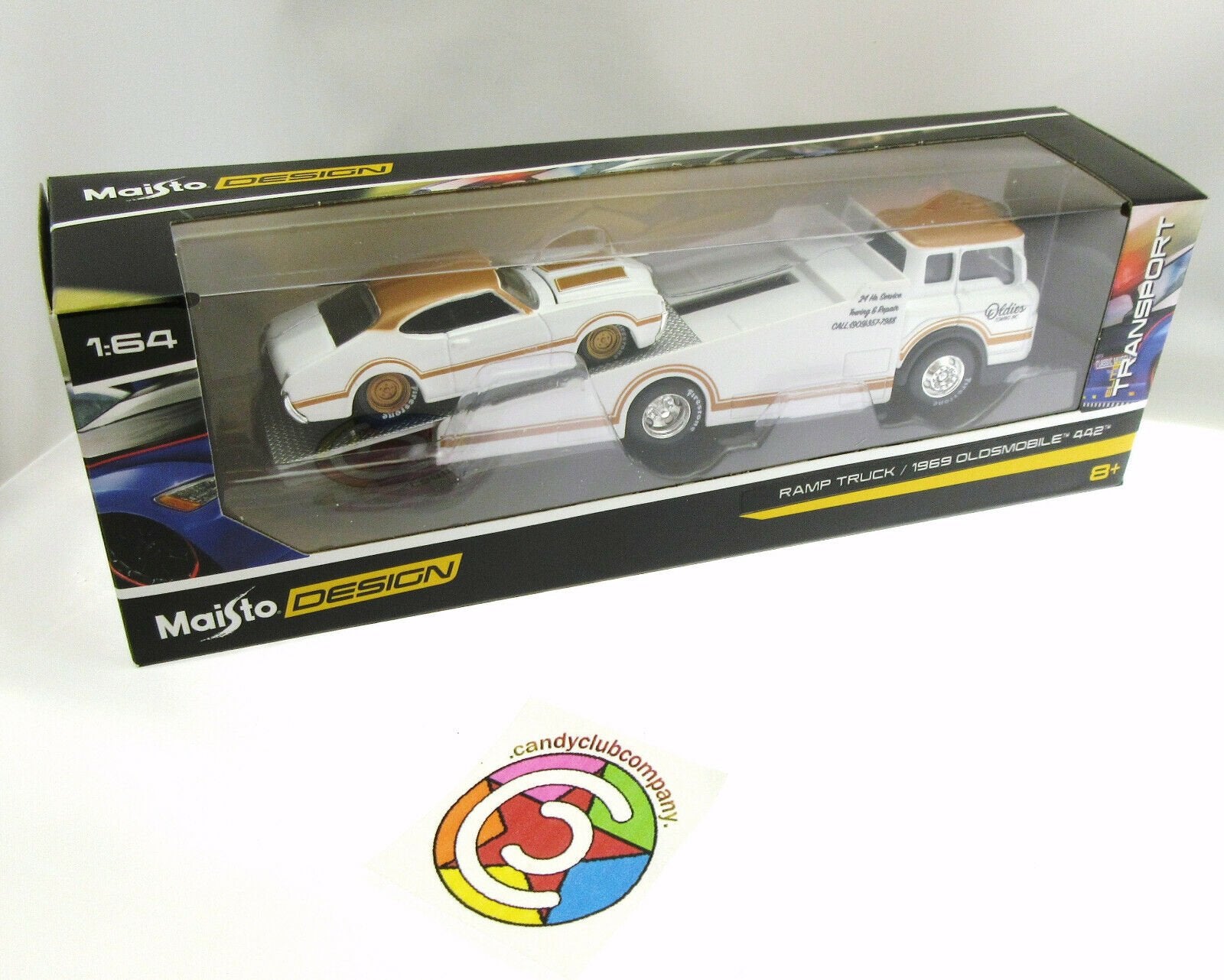 Maisto Design Die Cast Ramp Truck 1969 Oldsmobile 442 1:64 Scale