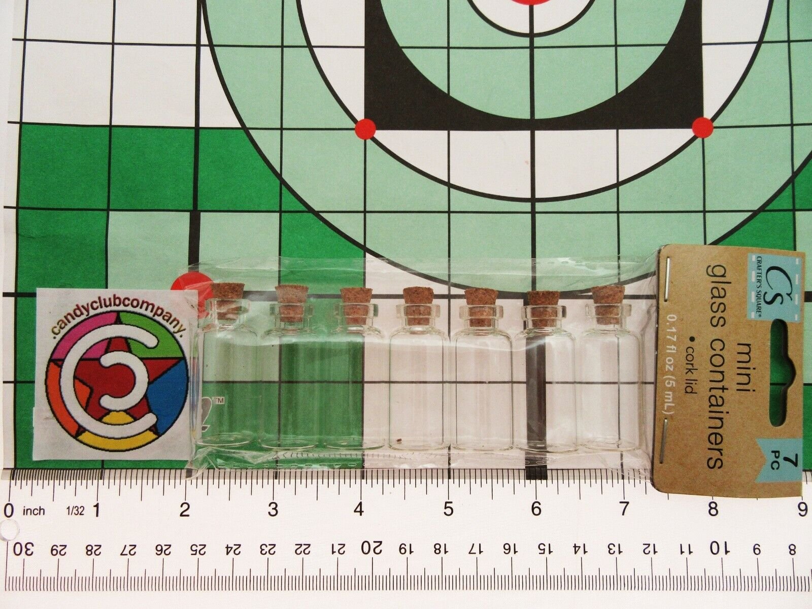 7 Pack Mini Glass Cork Lid Bottles(see photos next to ruler for size)