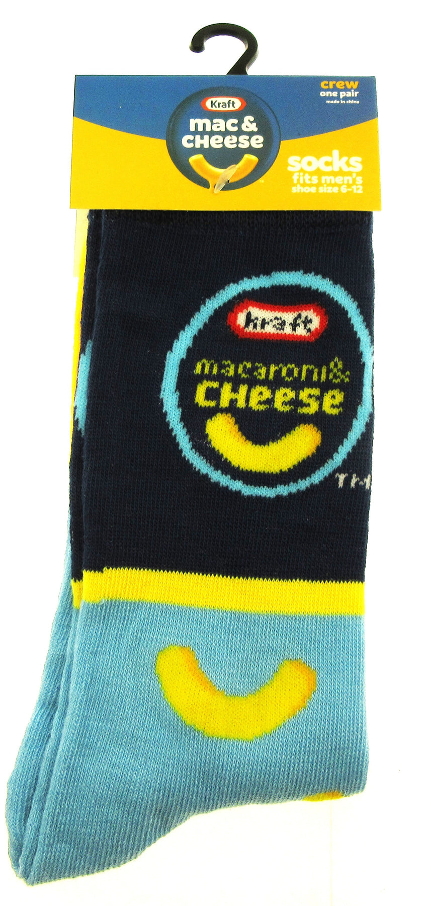 One Pair of Kraft Macaroni and Cheese Crew Socks for Men Shoe Sizes 6 - 12