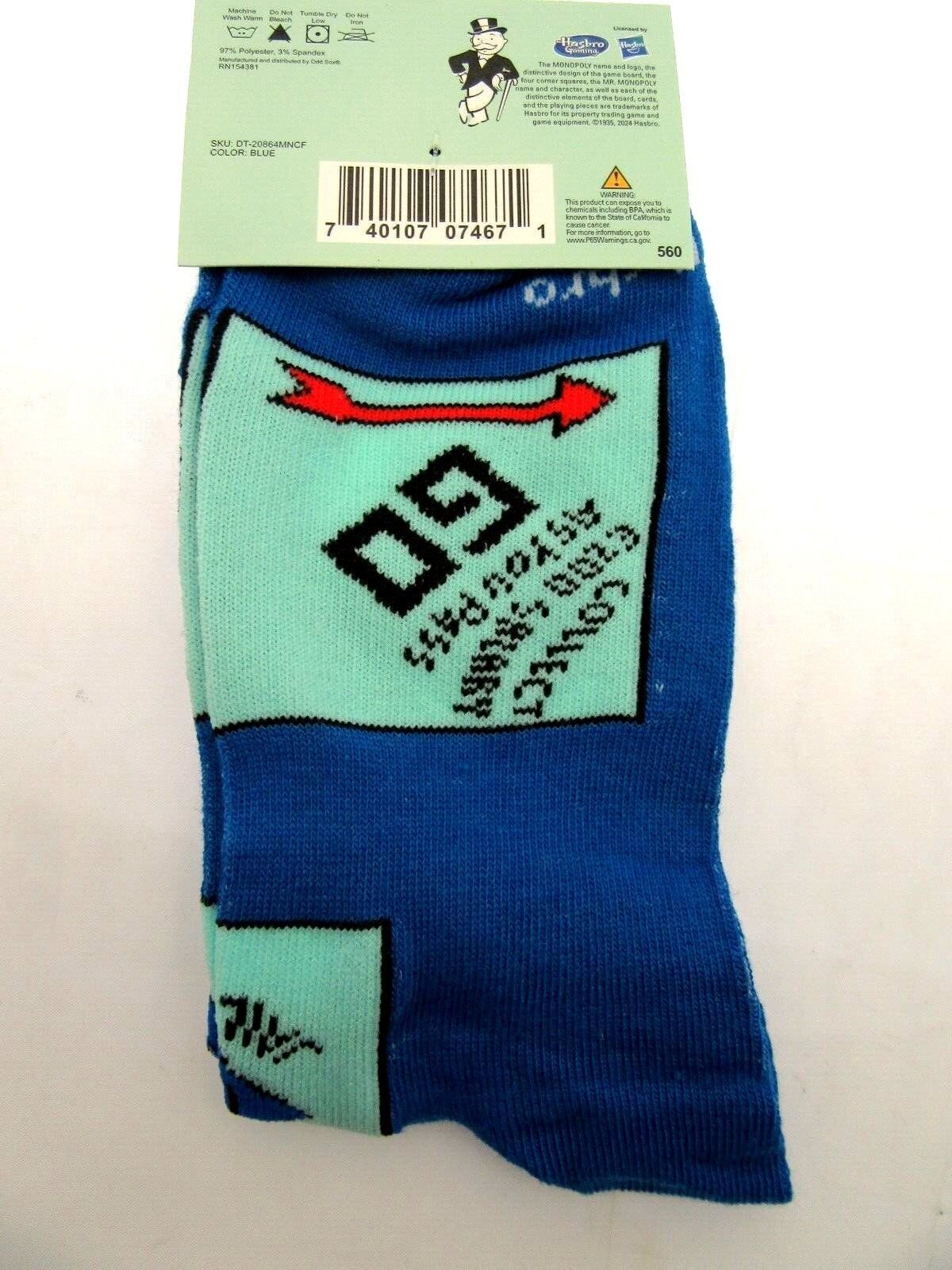One Pair of Monopoly Crew Socks for Men Shoe Sizes 6 - 12