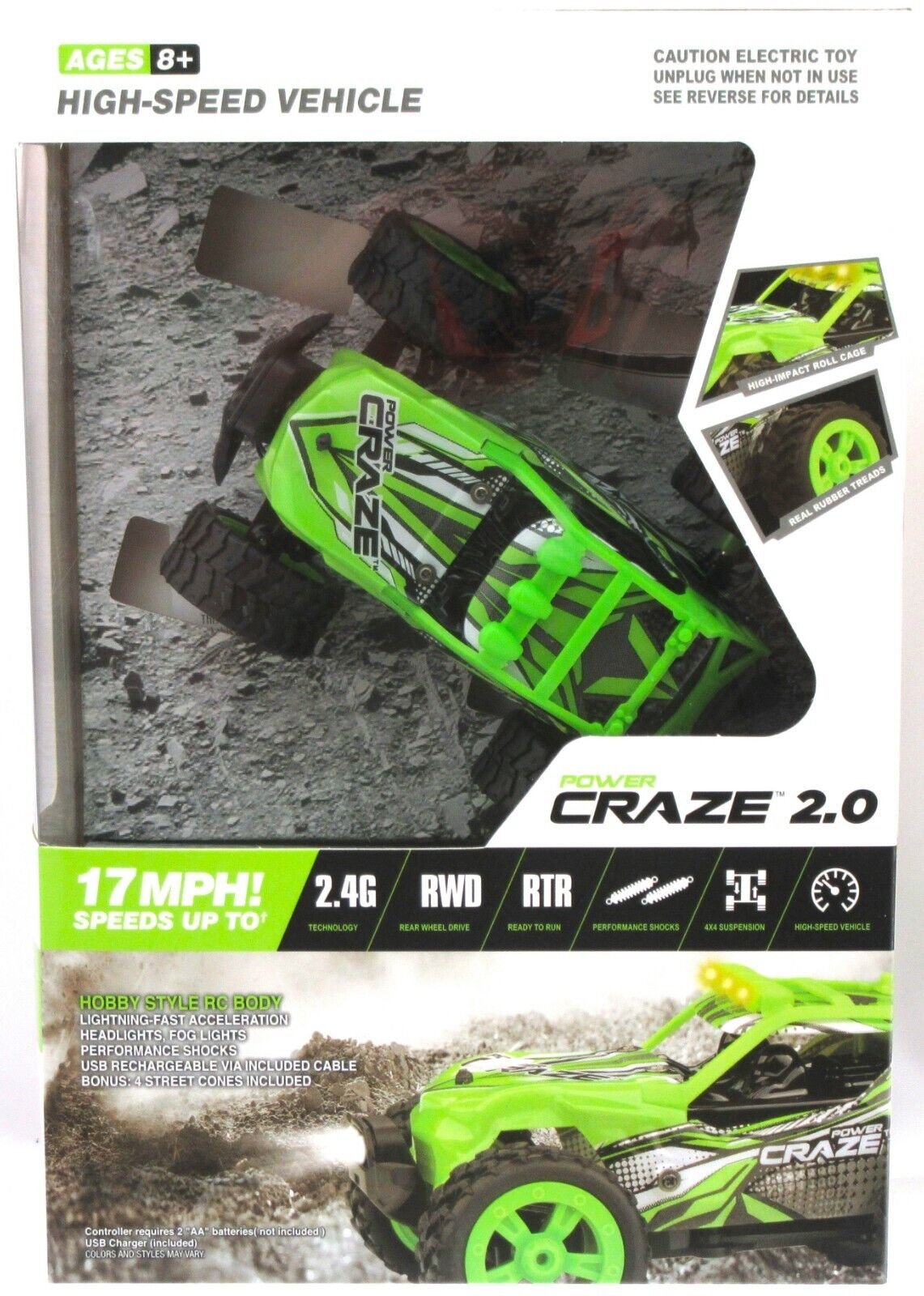 Get ready for some off-road action with this Power Craze RC Buggy! With a compact design and bright green color, this 2.0 model is perfect for trail racing. The electric motor ensures a smooth ride, while the 2WD capabilities provide maximum control on any terrain. This RC Buggy is part of the Trail Racers product line and is recommended for off-road use. The recommended surface is off-road, so get ready to hit the dirt tracks with this powerful electric buggy. Its features include a green color, electric 2WD capabilities. Order now and experience the thrill of racing through the trails!