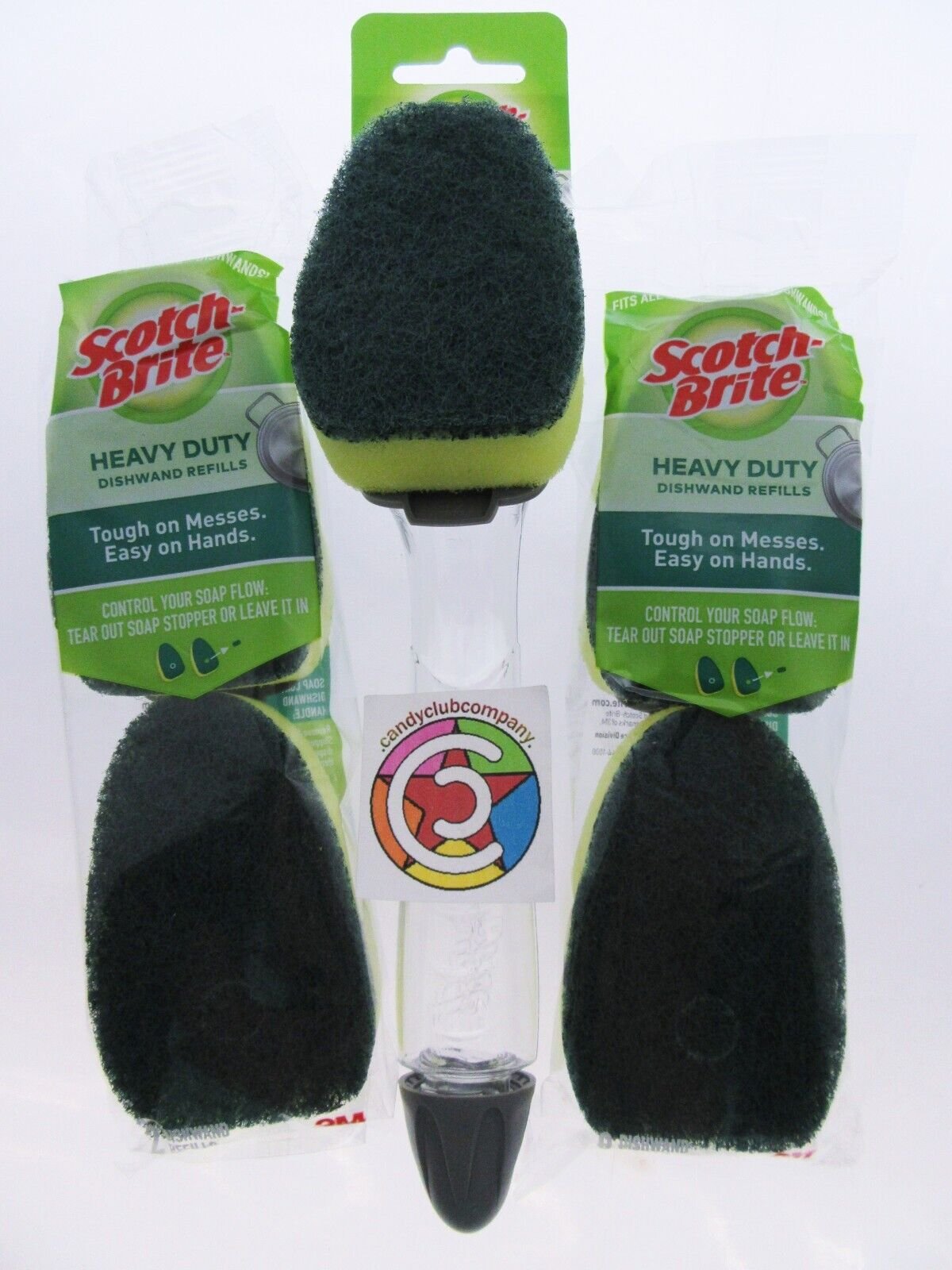 Scotch-Brite Dish wand and Two 2 packs of Heavy Duty Refills(No Center Hole or Button)  Important Information:• Candy that is pictured
