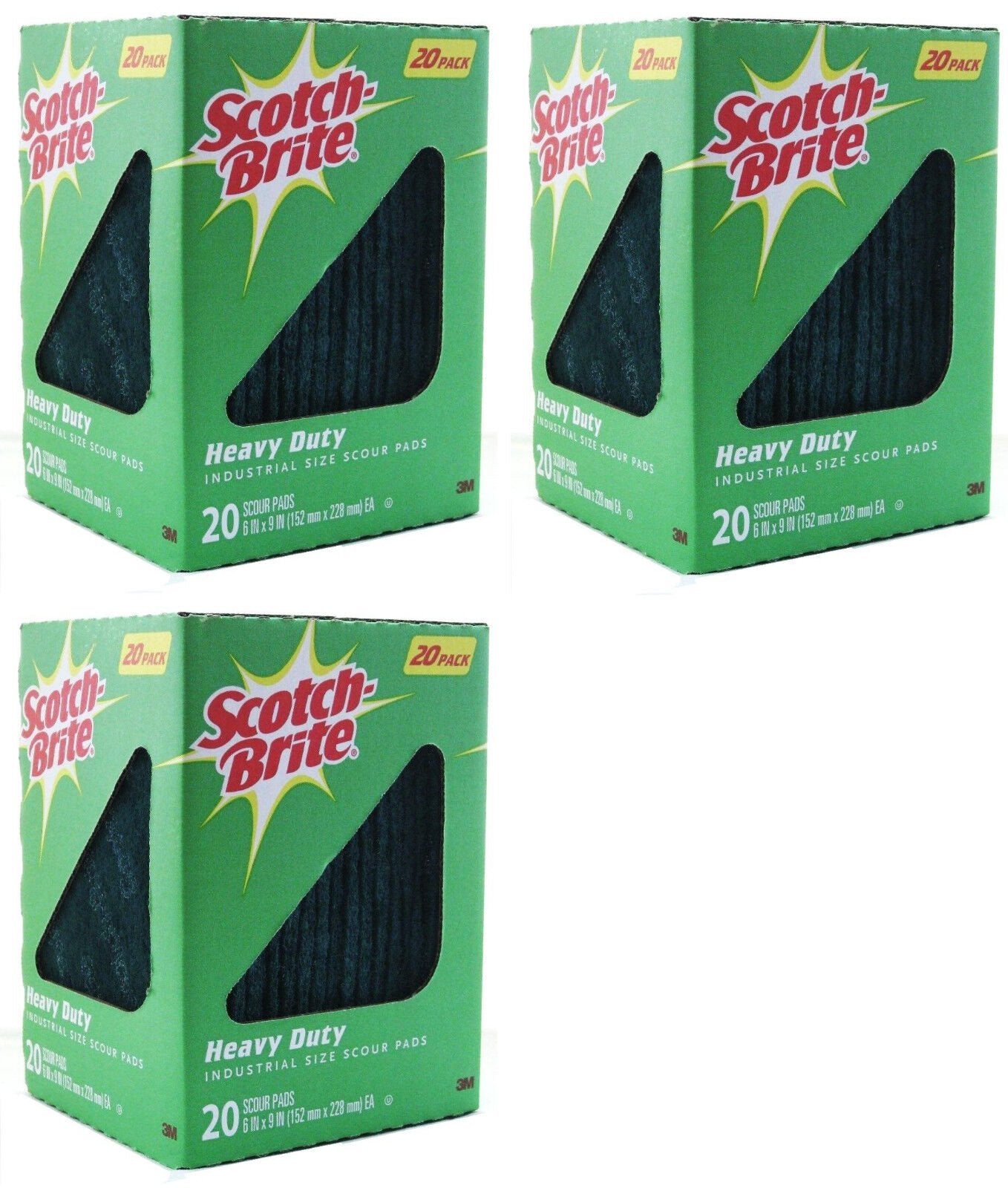 Scotch Brite Heavy Duty Industrial Size Box of 20 Scour Pads 6"x9" ~ Lot of 3