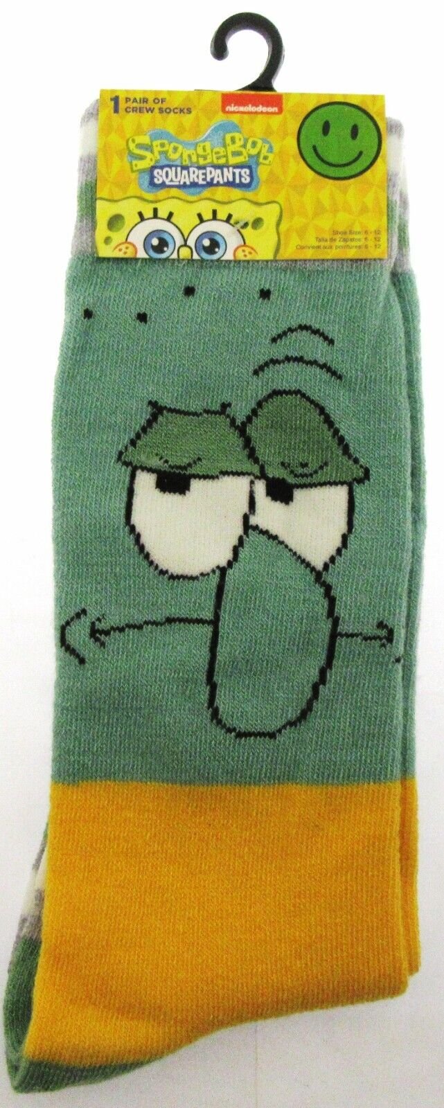 Add some fun to your wardrobe with these SpongeBob Square Pants! Crew Socks. Featuring the beloved character Squidward, these socks are perfect for any fan of the show. The socks are made of a lightweight, machine washable blend of polyester and spandex, making them comfortable and easy to care for. With a multicolor design and a crew style, these socks are suitable for casual occasions and walking activities. The pack includes one pair of socks in size 6-12, making it a great addition to any men's wardrobe. Show off your love for Squidward with these stylish and comfortable socks.