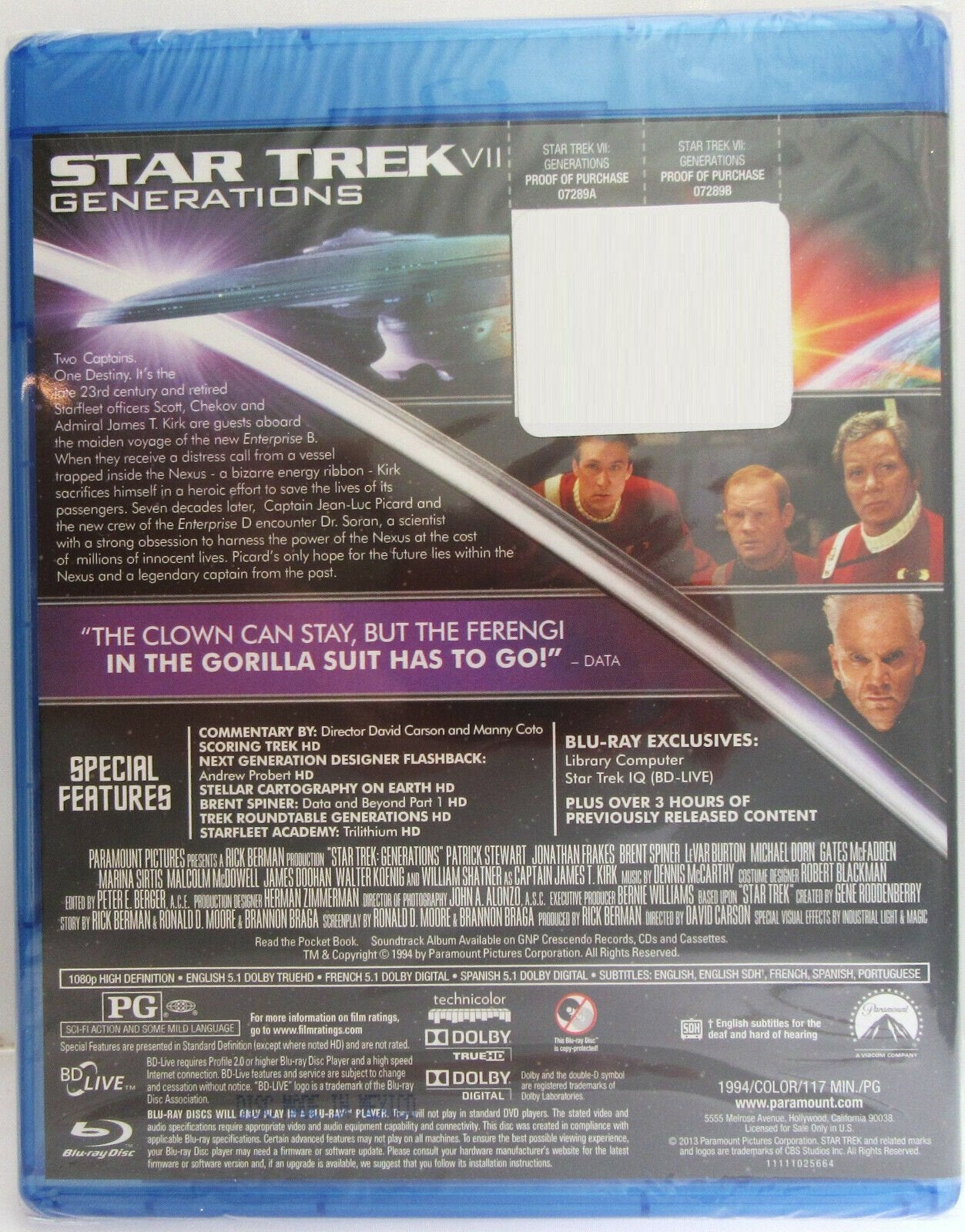 Star Trek VII: Generations ~ Shatner Stewart ~ Movie ~ New Blu-ray disc