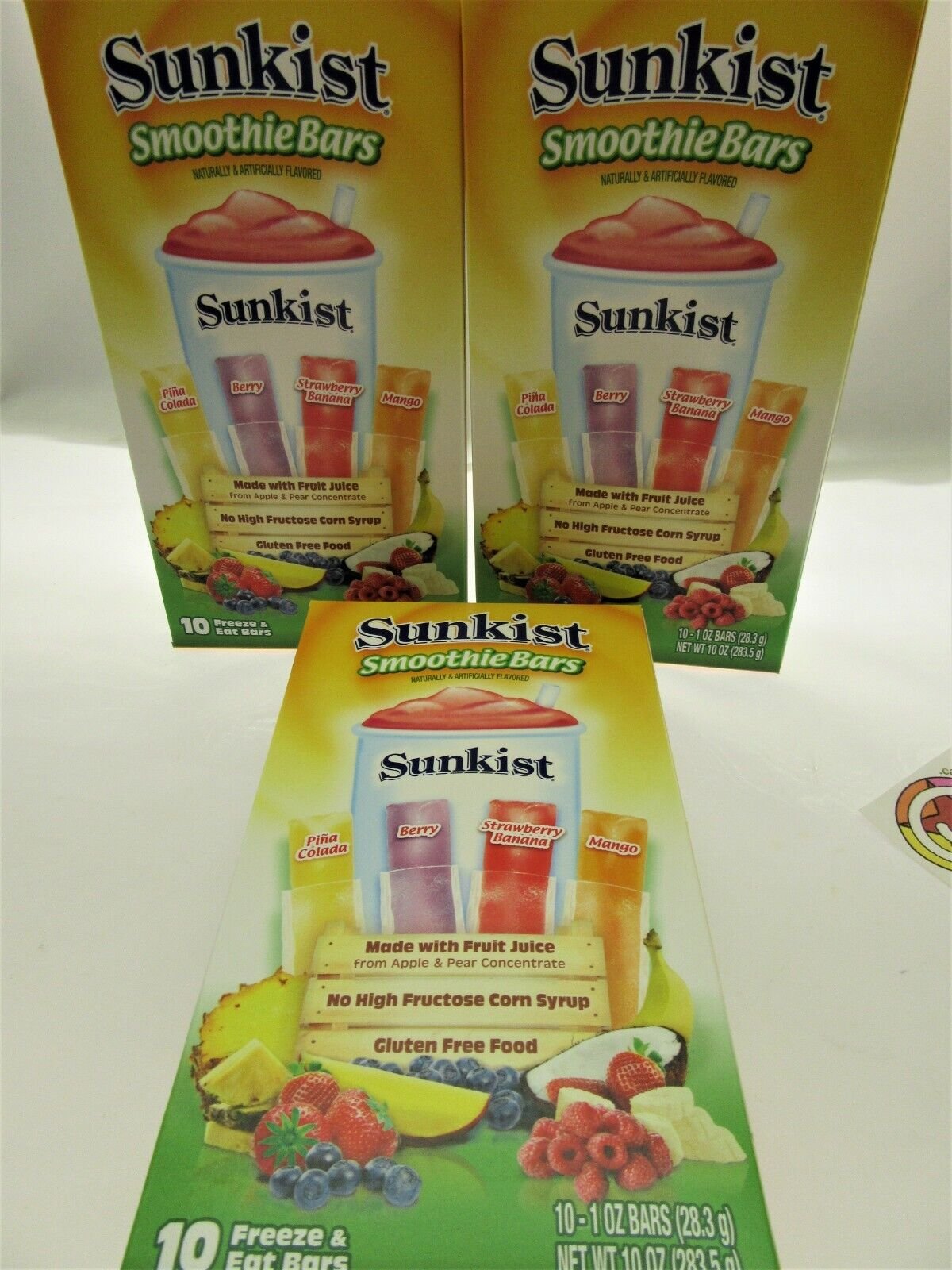 Sunkist Smoothie Freezer Pops 10 freeze pops ~ Slush Bars ~ Lot of 3