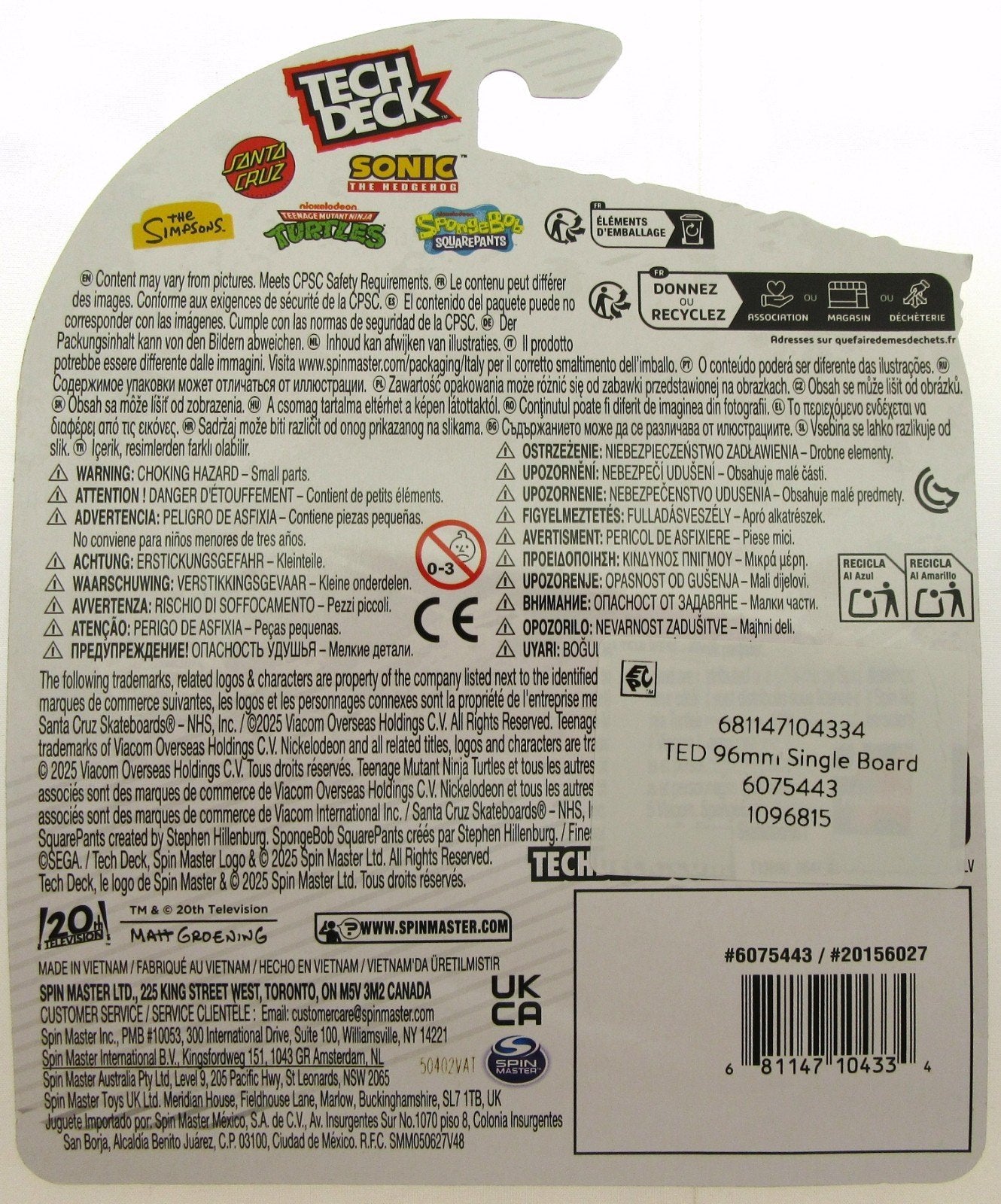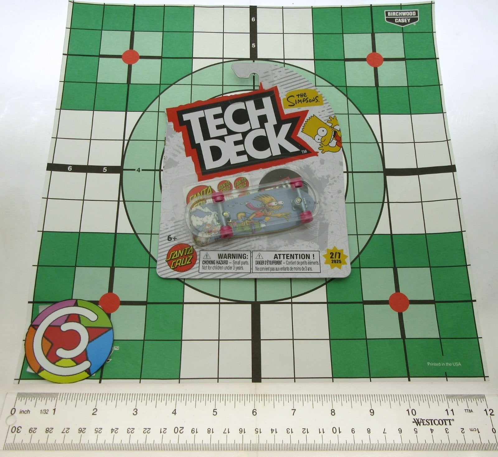 The Tech Deck Santa Cruz Skateboard/fingerboard featuring Bart Simpson is a unique toy inspired by the popular TV show "The Simpsons." This multicolored fingerboard is part of the "Tech Deck" brand and is manufactured in the year 2025, making it a collectible item for fans of both skateboarding and the iconic TV show. With its detailed design and ties to the beloved animated series, this product is sure to appeal to both fans of "The Simpsons" and enthusiasts of skateboarding.