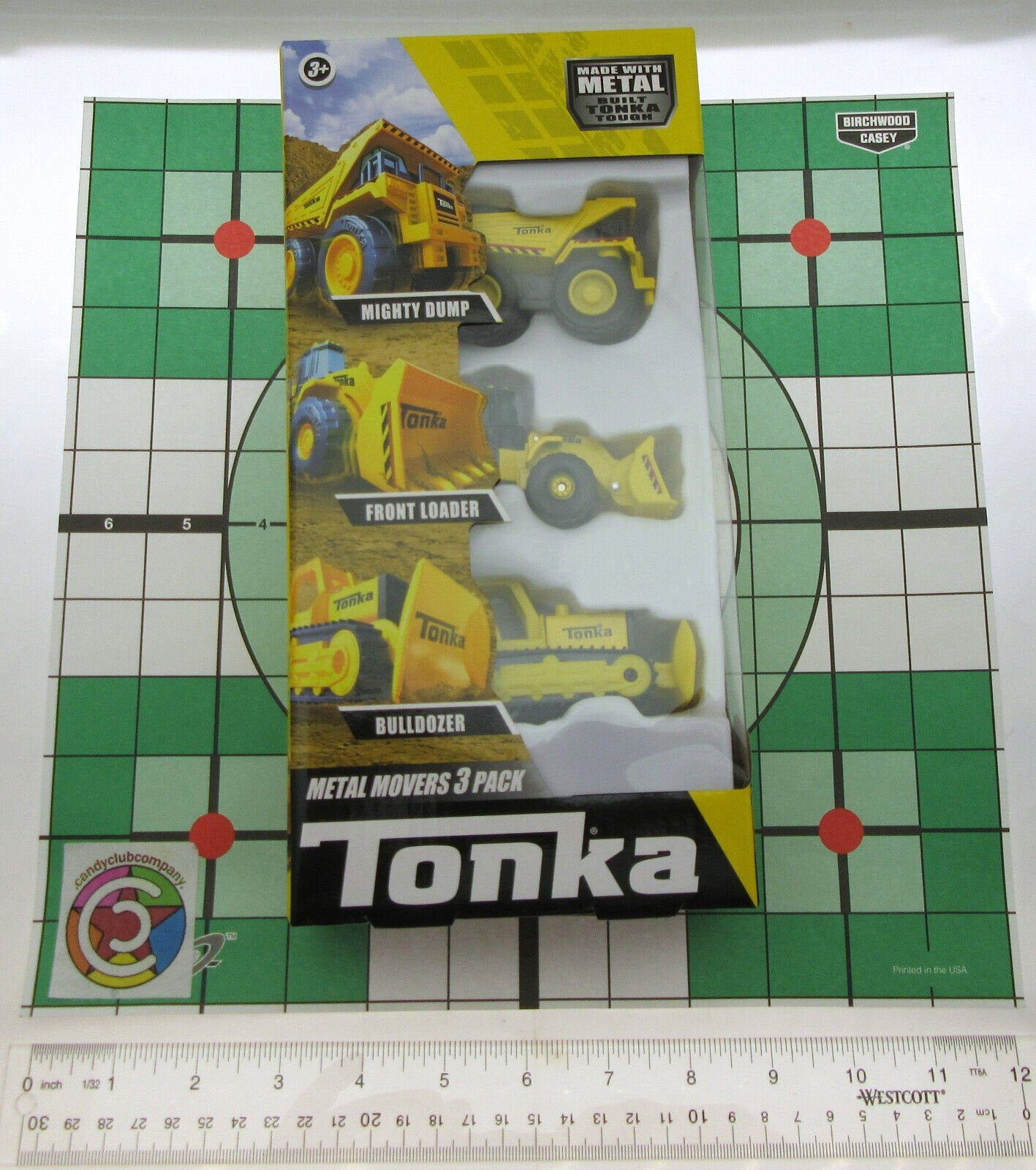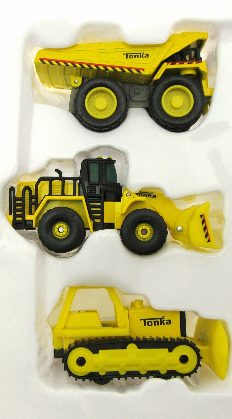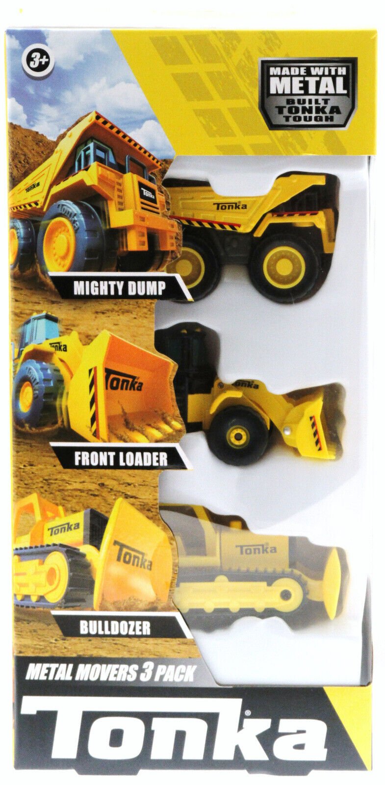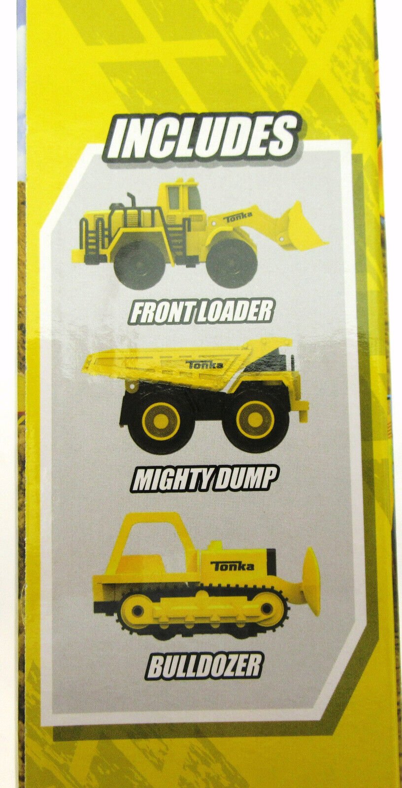 Introducing the Tonka Mighty Dump, Front Loader, Bulldozer set - a perfect addition to any child's toy collection. These earth movers are made of high-quality metal and plastic materials, ensuring durability and long-lasting playtime fun. The set includes three vehicles in a bright yellow color, with a Let's go play! series design. The Tonka brand is known for its exceptional quality and attention to detail, making this set a great gift for any young construction enthusiast. The unopened box ensures that the toys are still in their original packaging, ready to be displayed or played with. Get ready to watch your child's imagination come to life as they create their own construction projects with the Tonka Mighty Dump, Front Loader, Bulldozer set.