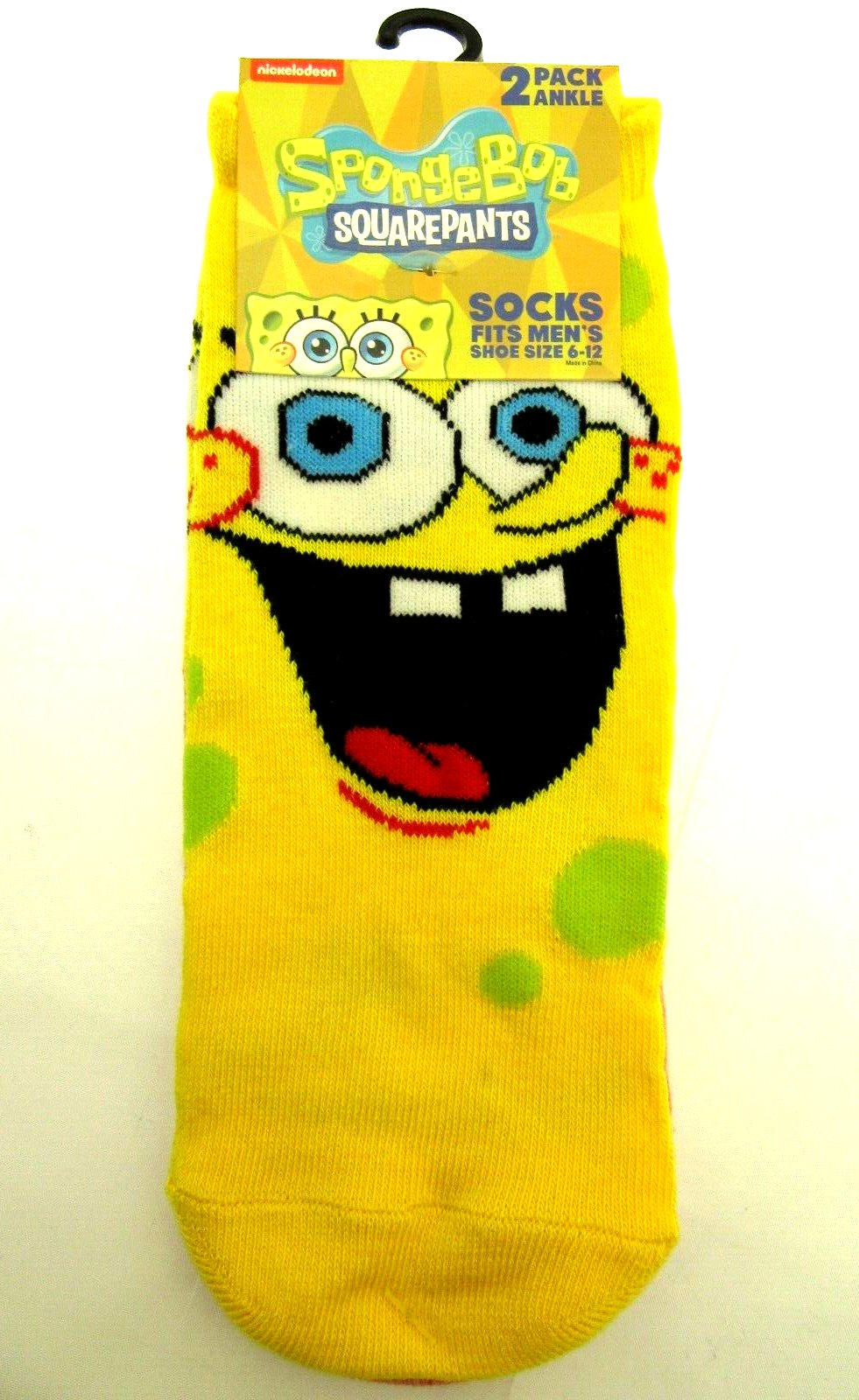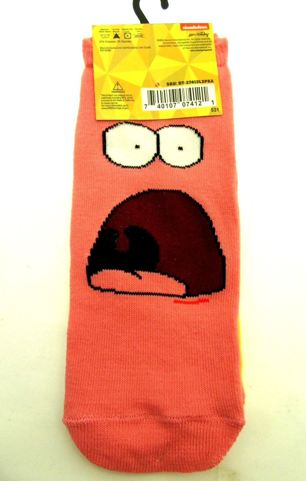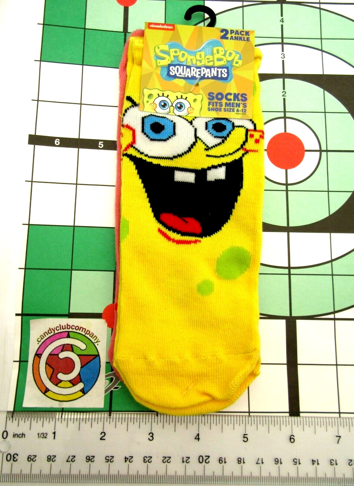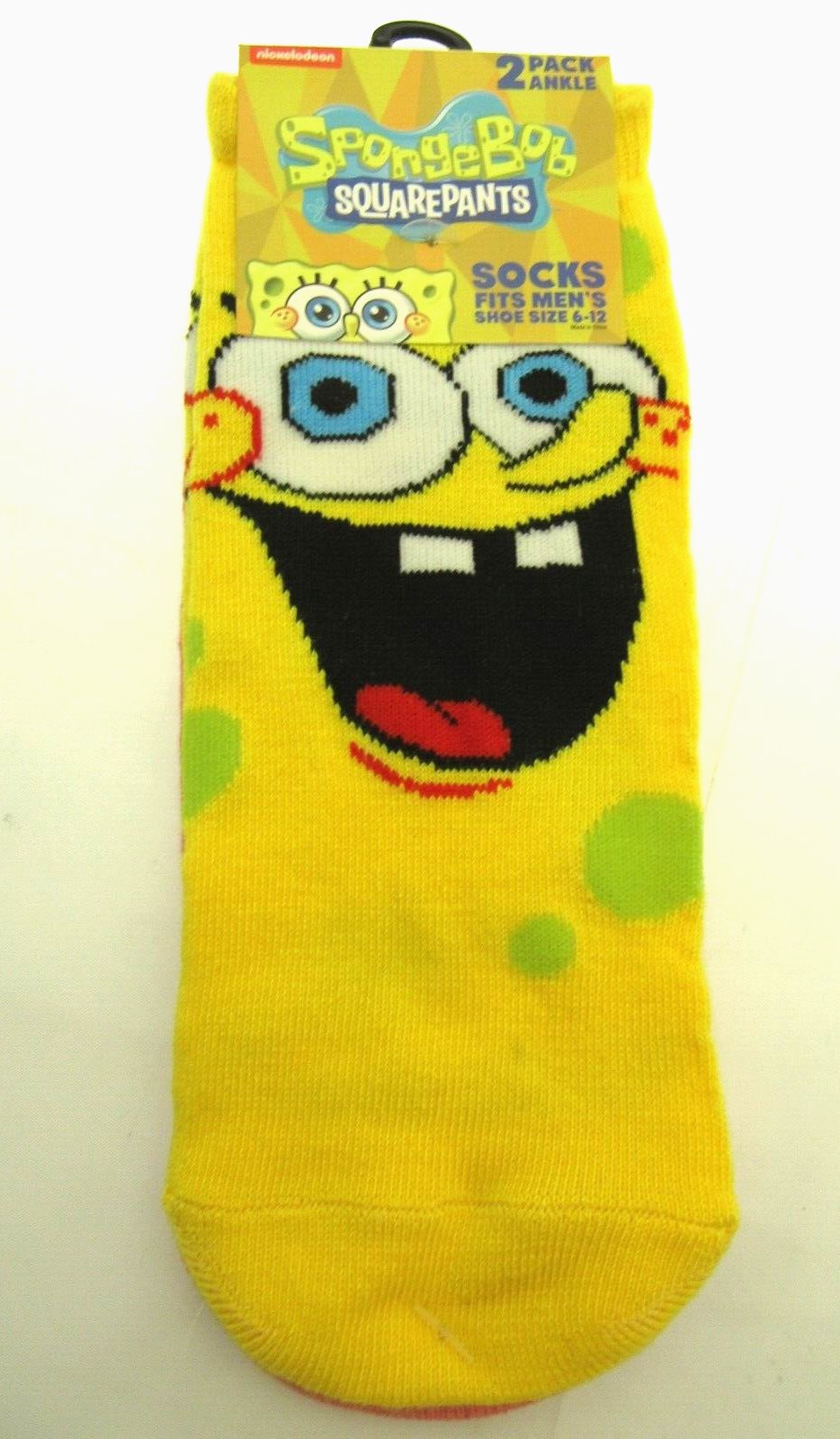 Two Pairs of Sponge Bob & Patrick Ankle Socks for Men Shoe Sizes 6 - 12